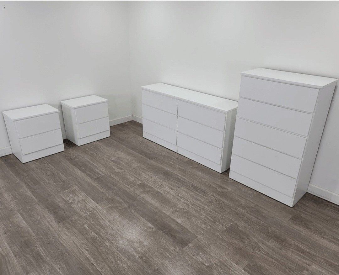 DRESSER, CHEST AND TWO NIGHTSTANDS