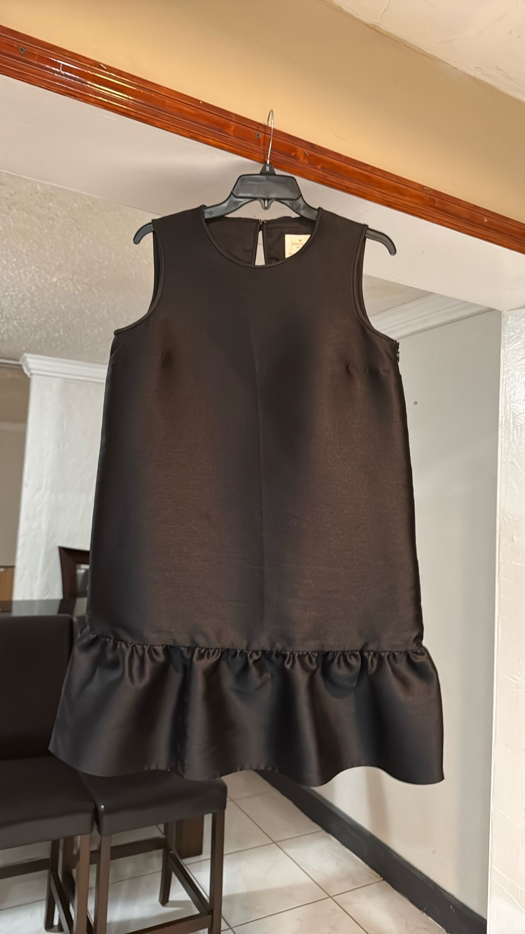 Little Black Satin Dress, size 8 - worn 2 times - clean. Great condition. Shoes are new - dress comes to the knee - very cute (pearls not included - shown for ideas). Perfect for this holiday season. Shoes are new - selling combo for $160.