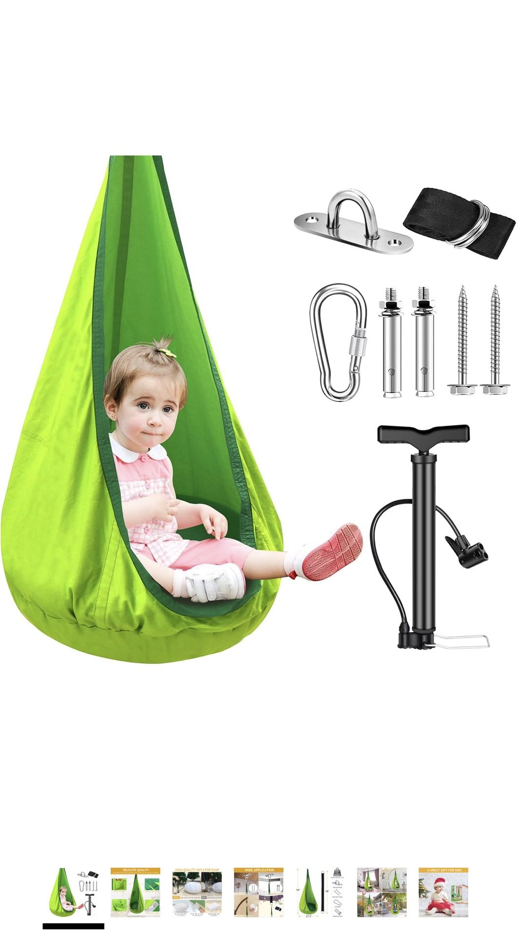 New Kids Pod Swing Seat - Sensory Swing with Upgraded Inflator Pump and Inflatable Cushion, 100% Cotton Child Hammock Swing Chair with All Accessories for Indoor and Outdoor, Max 176 Lbs $45