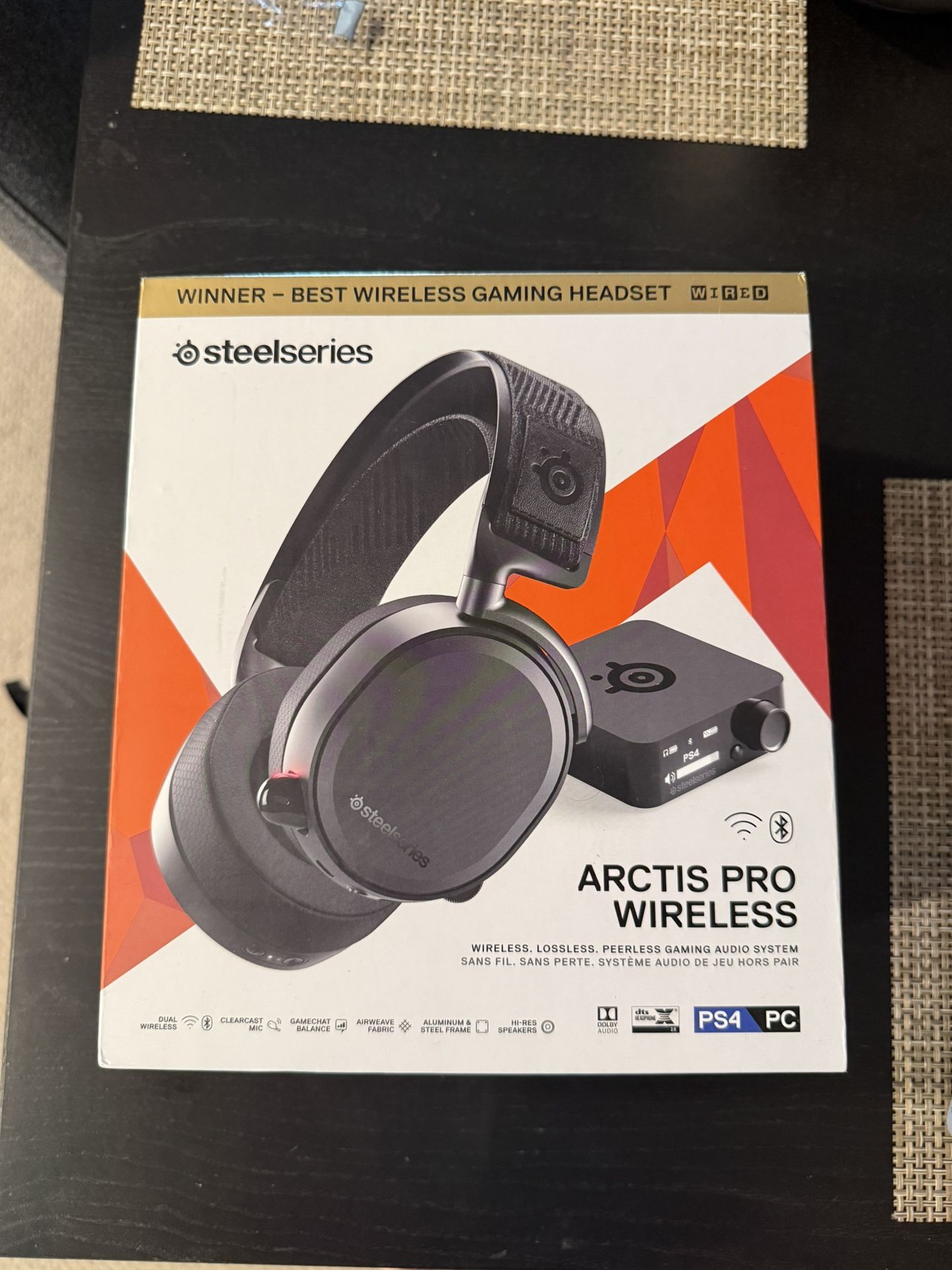 Used headphones. Have a scratch on the side but work great. Comes with 2 batteries. Please do not confuse this with the “Arctis Nova Pro Wireless”