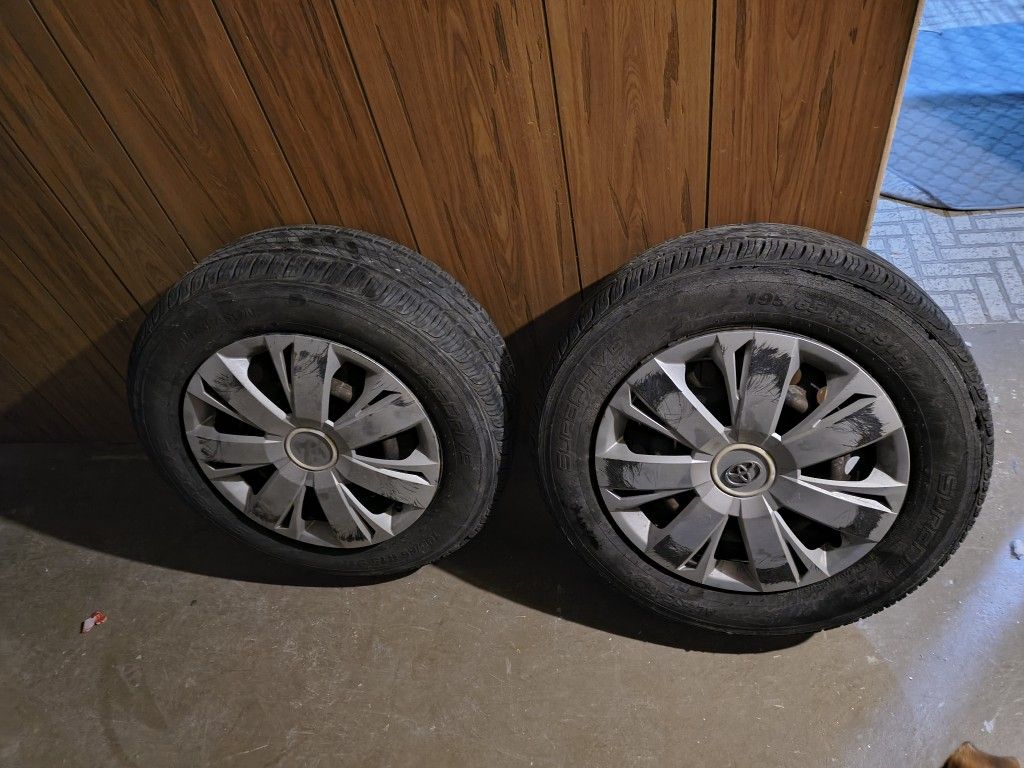 4 tires with rims for Toyota Corolla 2009 2 come with cap the other 2 don't