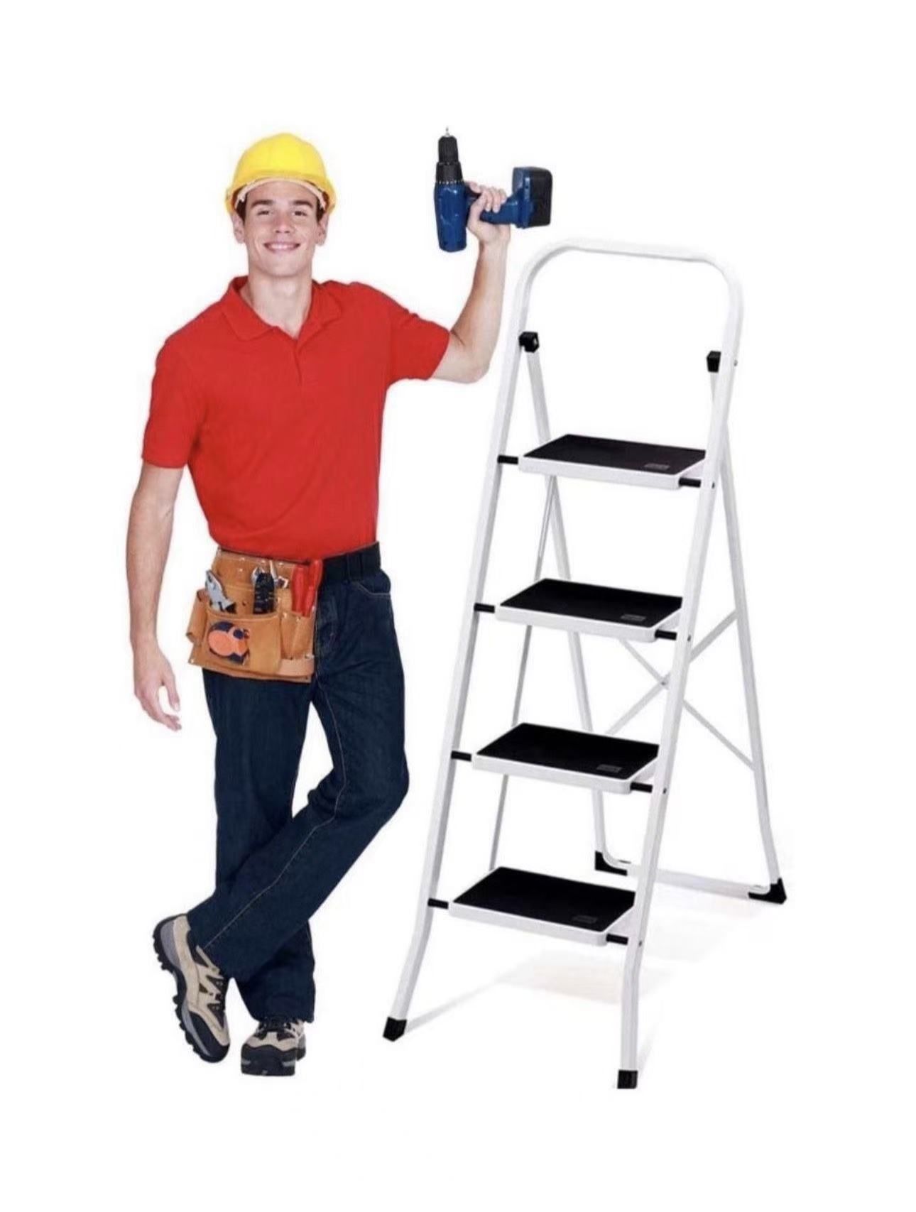 THE LADDER SIZE】: Open: 52"H X 34"L X 17"W, Folded: 56"H X 2"L X 17"W; Maximum load: 330 lbs. This ladder comes fully assembled. For product quality and safety, our step ladder stool has ANSI-ASC A14.11 Standards Certification. 【SAFETY, STABILITY AND SECURITY】: Delxo's 4-step ladder features an enlarged non-slip pattern platform that measures 10"H X 7.9"L X 12"W. The locking hole mechanism and rubber feet do not shift, allowing you to plant both feet securely in place while providing heel-to-toe foot support and preventing scratches on the floor. 【PORTABLE, LIGHTWEIGHT AND SPACE SAVING】: It folds up small enough to fit into small spaces. The lightweight aluminum construction folds up easily and weighs only 9.1 lbs. As a result, it is convenient for carrying, storing, and transporting. This can be used indoors, outdoors, in the kitchen, or anywhere else in your home. 【MULTI-USE AND VERSTILE】: This Delxo ladder can be used in multiple ways. It acts as a chair or steppingstone for small pets. If you're looking for a visually appealing ladder, you don't have to look far! It provides extra height for cleaning, painting, or just reaching out. It's perfect for your home or business!