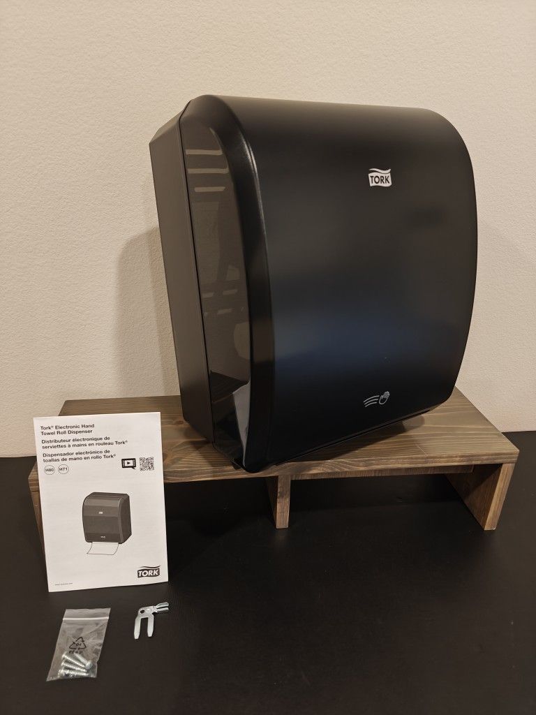 ELECTRONIC PAPER TOWEL DISPENSER (Tork) Black DURABLE, for HOME, GARAGE, RETAIL, COMMERCIAL (Used) Works Excellent 🎄🎁🎅