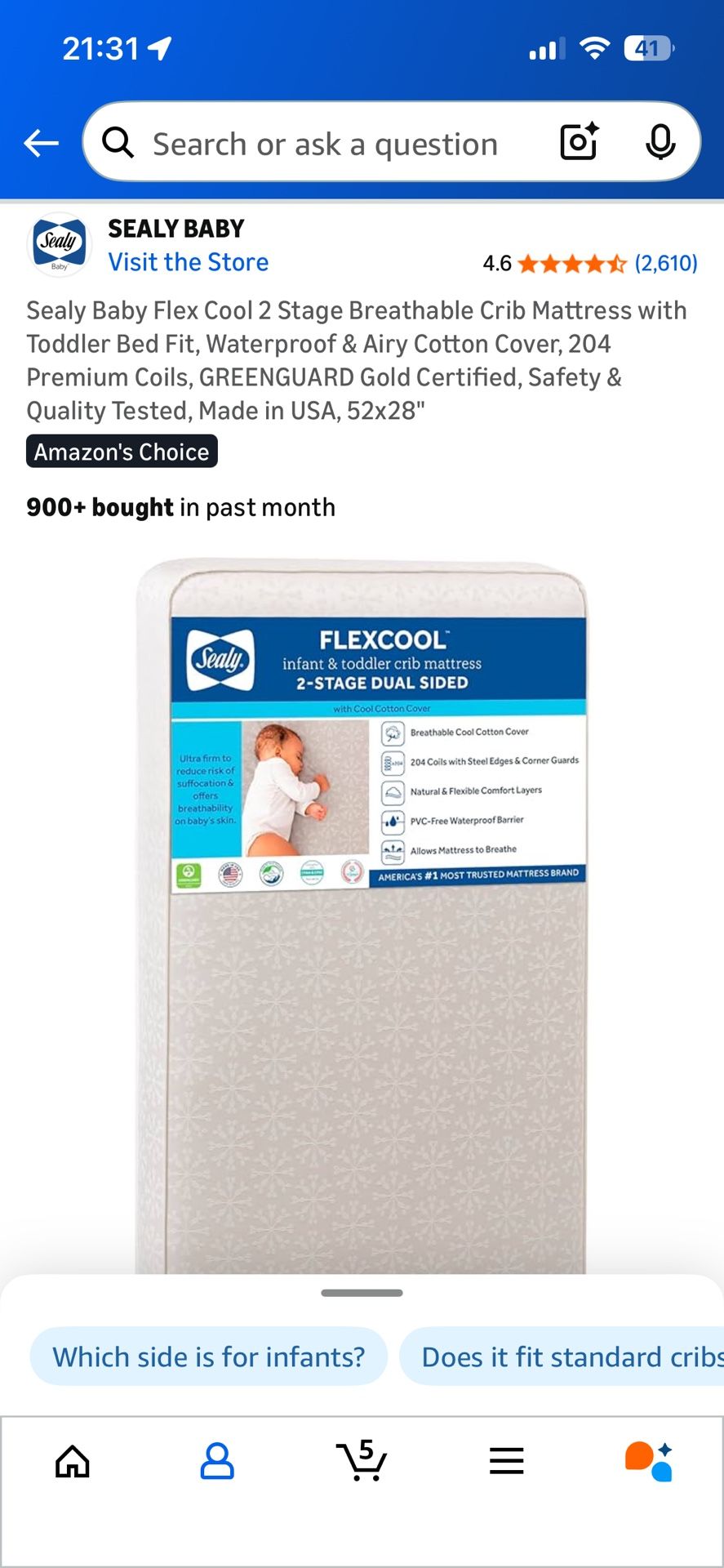 Cool 2 Stage Breathable Crib Mattress with Toddler Bed Fit, Waterproof & Airy Cotton Cover, 204 Premium Coils, GREENGUARD Gold Certified, Safety & Quality Tested, Made in USA, 52x28" - open box