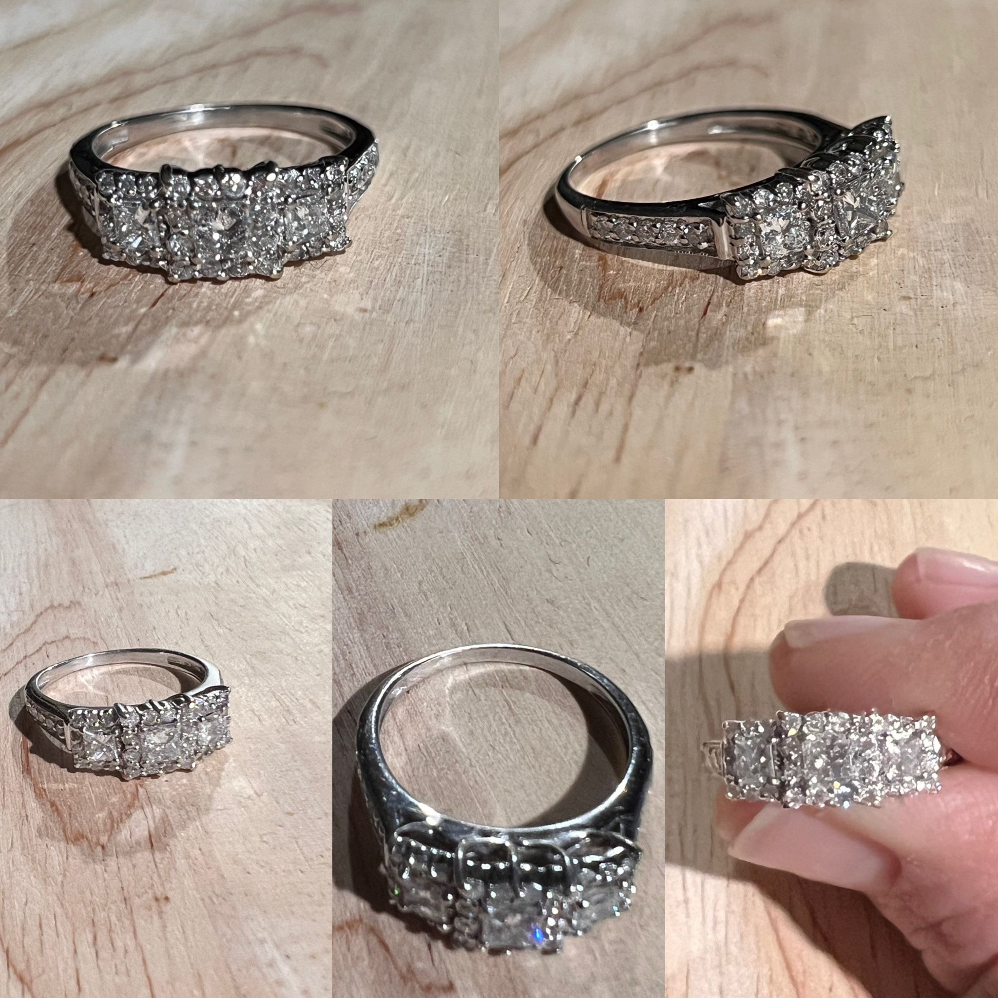 Great condition. Originally came from Kay Jewelers. I did have it resized to a size 7.5 or 8 at some point. I’m not entirely sure. It has been cleaned very well. I didn’t wear much because it ended up being too big still. I don’t have the original box it came in anymore but I do have a 3D printed red heart puzzle that holds a ring. Willing to include it for anyone looking to propose. I added it to the pictures.