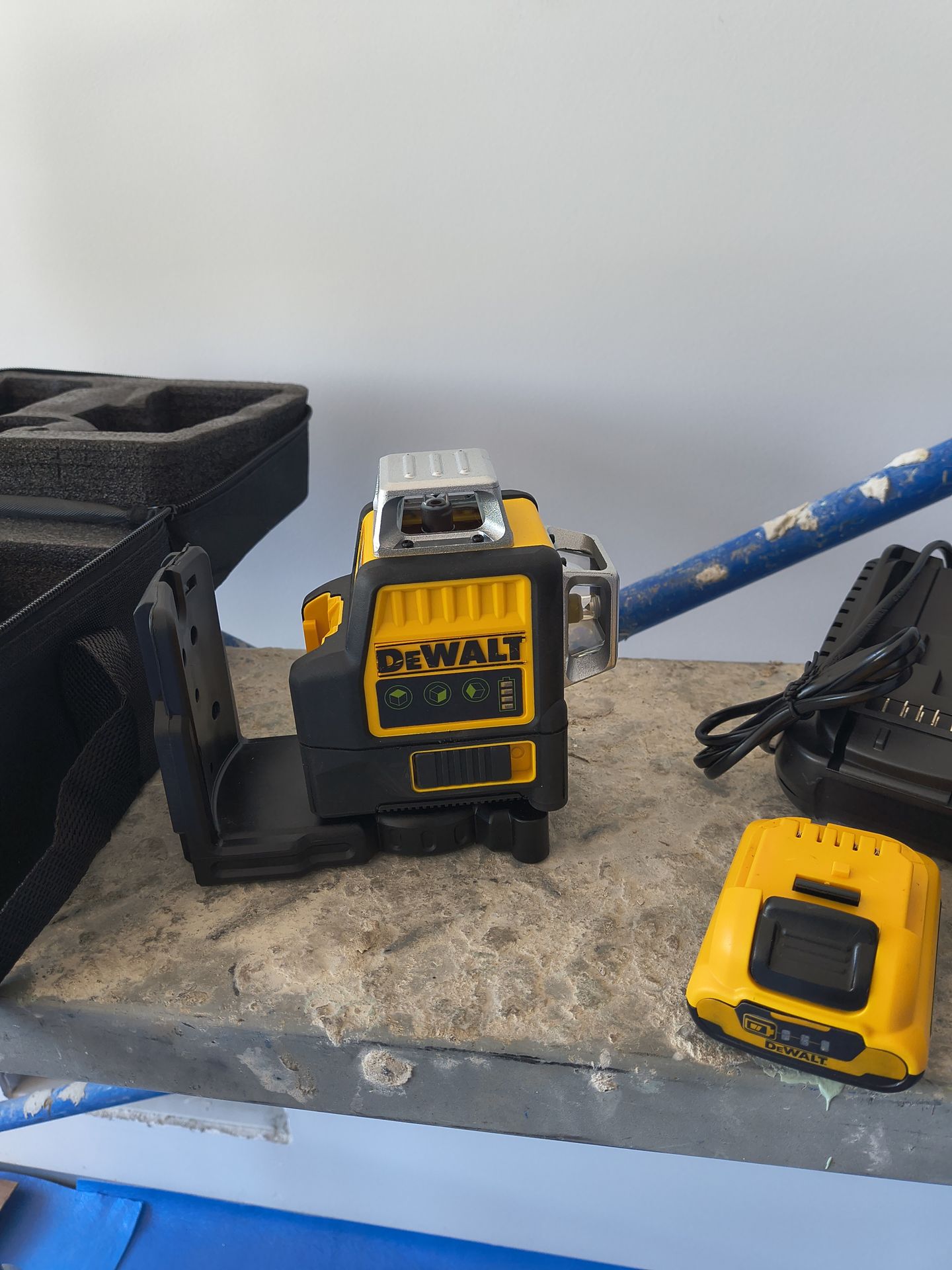 Lacer nuevo muy bueno para los que trabajan en tallo. Gabinetes . Nivelar muy bueno trabaja bien lo pueden calar sin compromiso bienes con una batería. Que dura 12 oras. Su cargador . El lacer . Su estuche. Para guardarlo. El manual