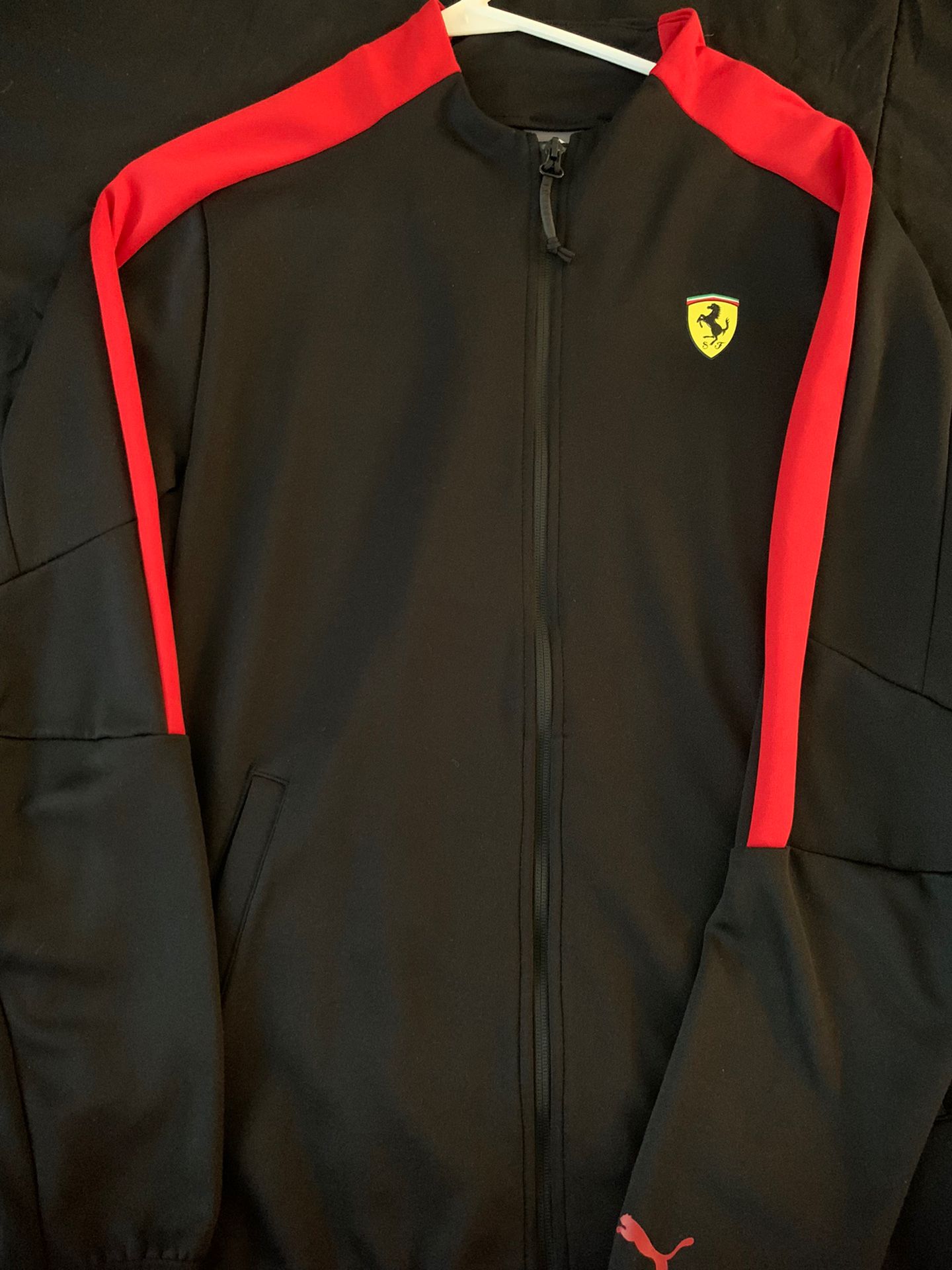 PUMA Ferrari - All Black & Red Trim. Mens Size Small. It also has black & Red PUMA Pants to match.