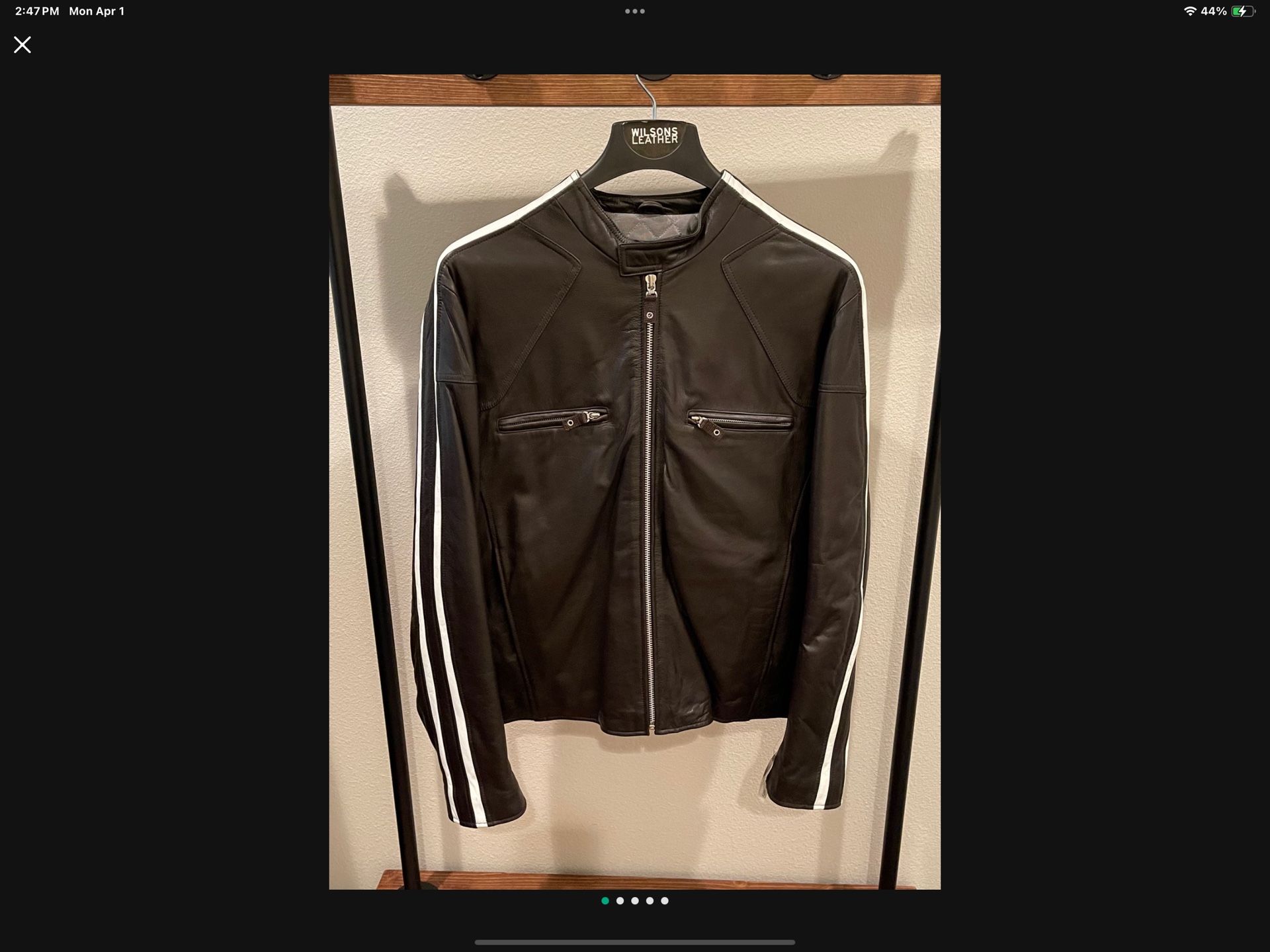 Wilson’s Black Leather Jacket w/ White Stripes Down Arms. NEW w/TAGS! Men’s Size Med.