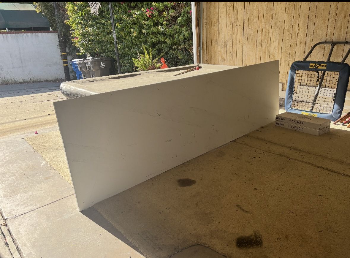 Polished quart stone in perfect condition. It’s 12 feet by 3 feet and can be used for a bar top, or cut up in to pieces for bathroom countertops.