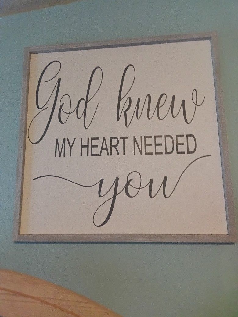 God knew my heart needed you picture that measures 25 1/2 by 25 1/2 This is NEW! ASKING $20.00 Cash upon pick up or we can meet up whichever works for you. I can also deliver for a small fee if you are close.