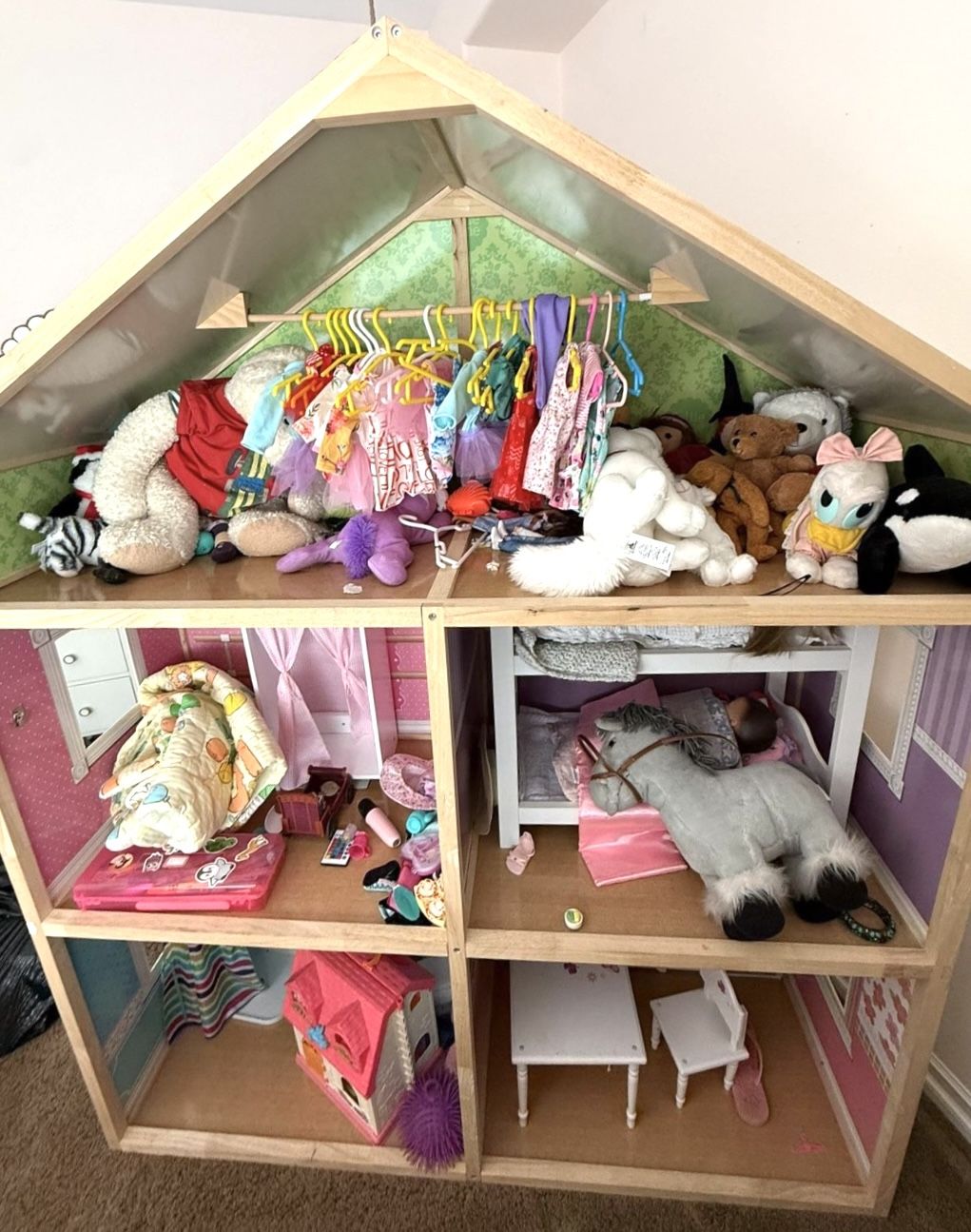 6FT Doll house for American Dolls or Barbies! Just disassembled and ready to pick up! Dolls, furniture, and accessories not included. In great condition! Six Foot Tall- it’s big!!!