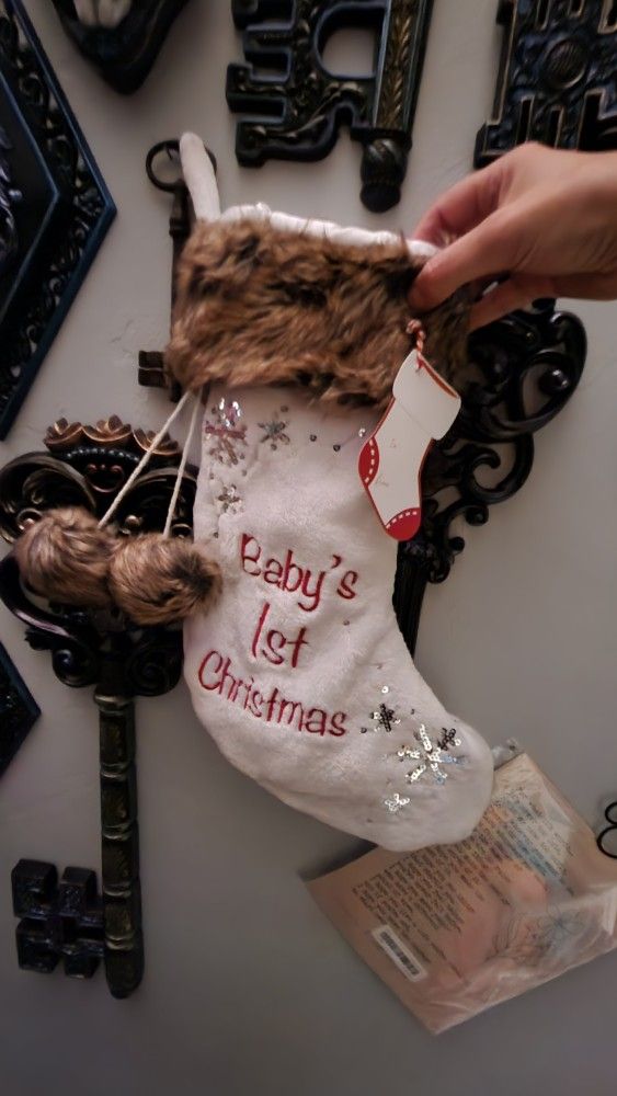 This stocking is so super soft. Faux fur. White and brown trim with embellishments and sequins.