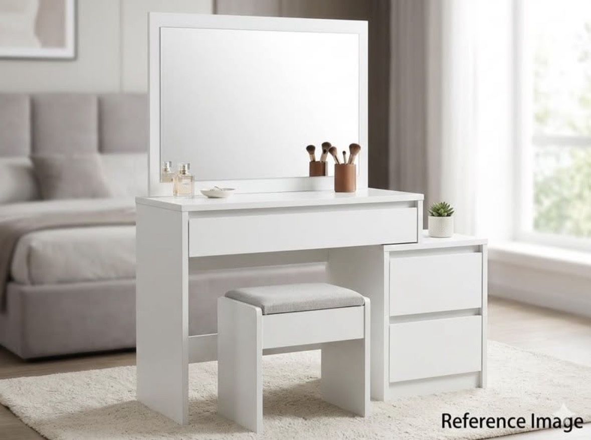 Brand new white makeup vanity / dressing table, never assembled. ✔ Modern design ✔ Multiple drawers for makeup & accessories ✔ Perfect for bedroom or dressing area ✔ Solid and heavy construction Condition: Brand new in box (Box opened slightly only to verify contents) Assembly required. Photo for reference. 📍 Local pickup 📩 Message if interested – First come, first served.