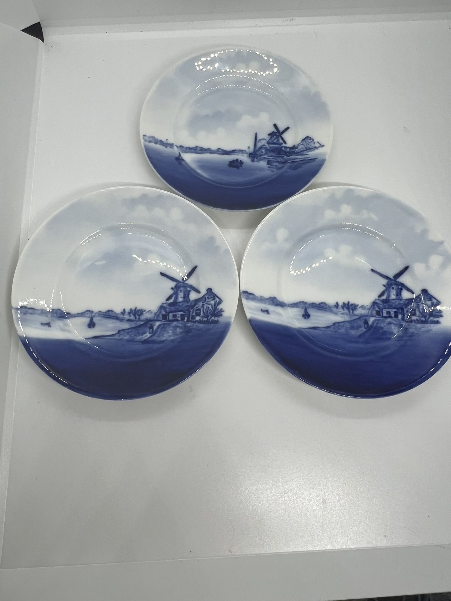 Vintage Set Of 3 Rosenthal Bavaria German Delft Blue Plates 6” Round Windmill
