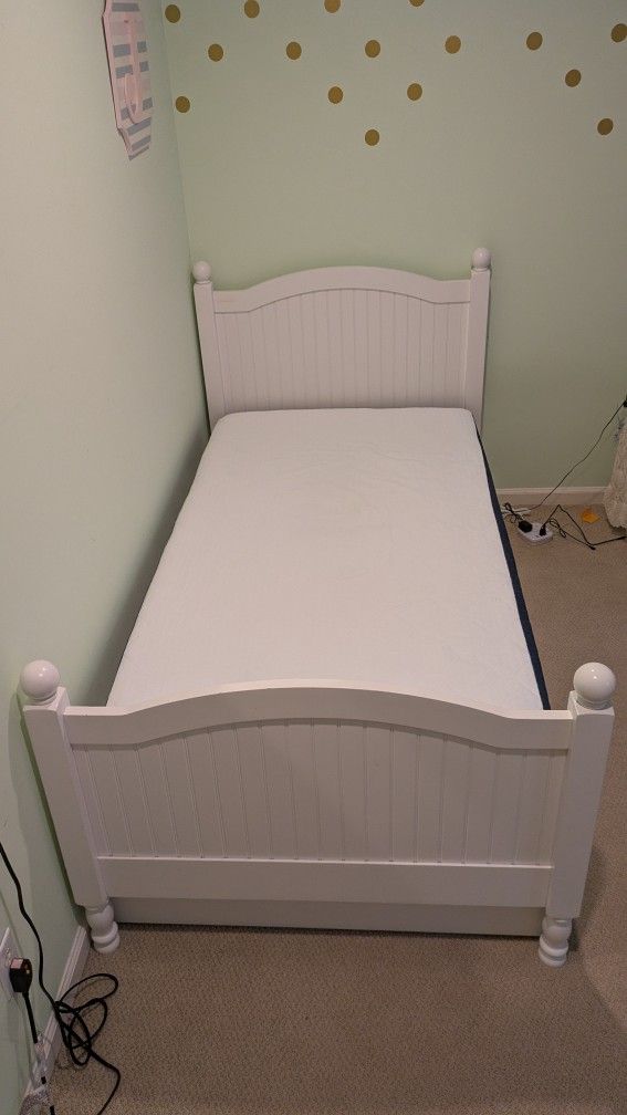 Pottery Barn Catalina twin size bed and trundle set for $350. It has little stain from clip on light as shown on the photo, otherwise, it is gently used and in great condition. Pick-up only. Will be disassembled for easy transportation.