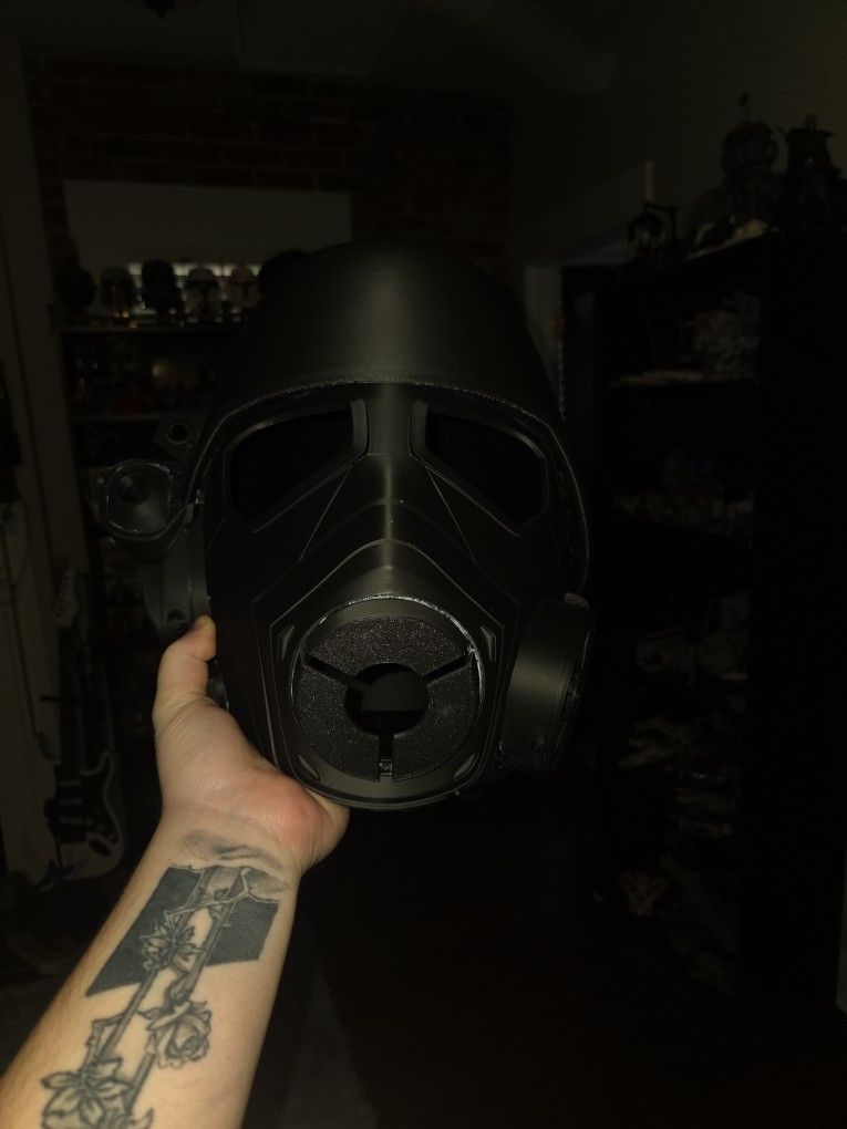 3d printed Fallout NCR Ranger helmet. Fits a head size of 24.5 circumference. Use as a cosplay prop or make a beautiful display piece. Comes as a raw print.