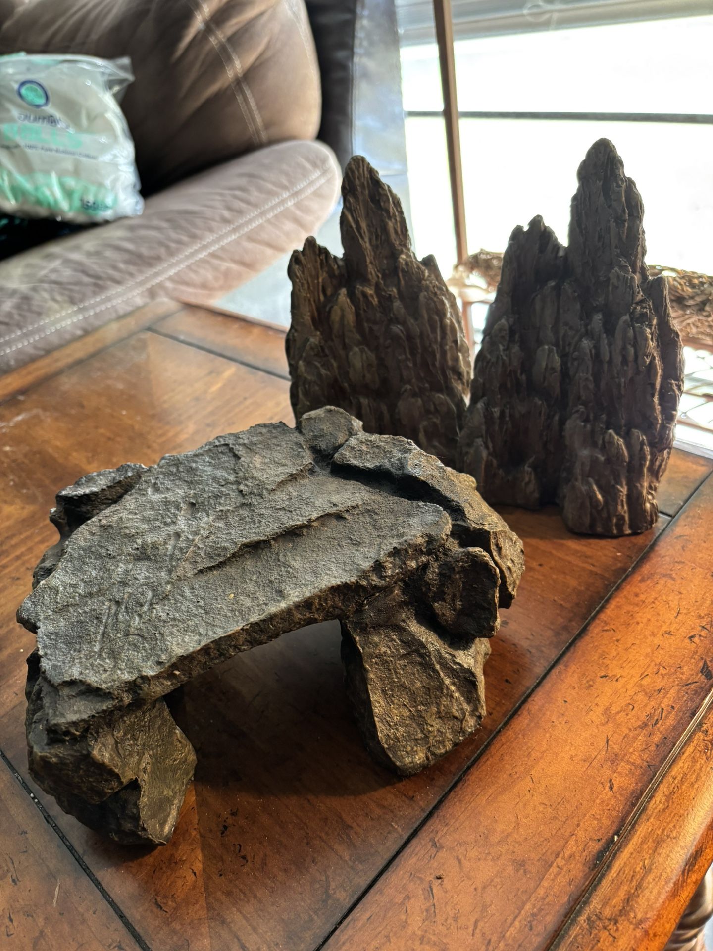 Unused and clean A small rock-like cave and additional structures for Reptile enclosure decoration Hard durable plastic with rock-like texturing It was too small for our adult Bearded Dragon Good for smaller snakes or lizards. Cave is: 3.5” tall 3” wide opening