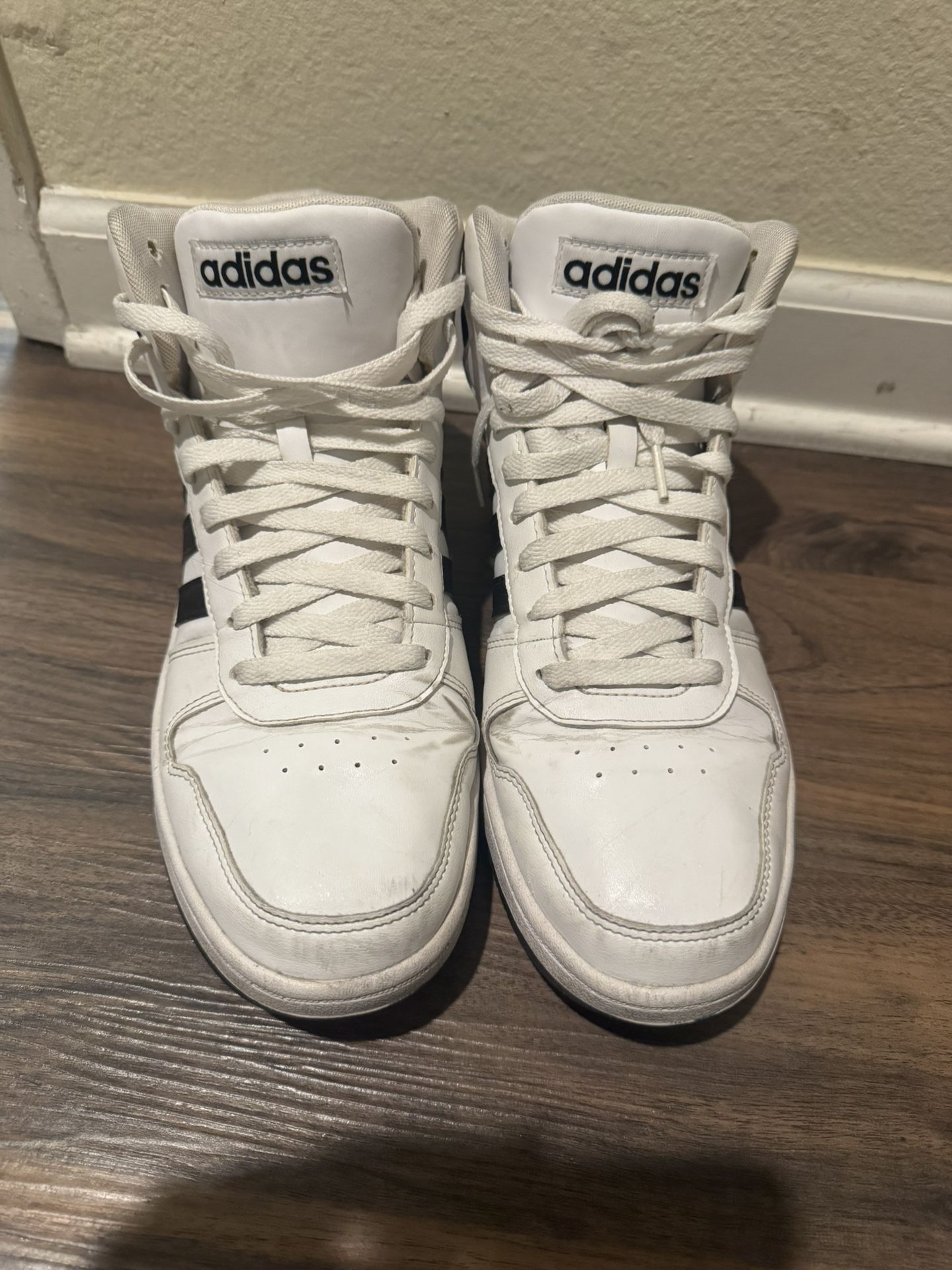 Adidas Hoops 2.0 Mid White W/ Black Stripes Size 11.5 Men