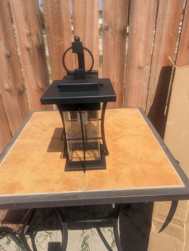 Brand new in box. It has a photo cell so it comes on when it gets dark on its own.