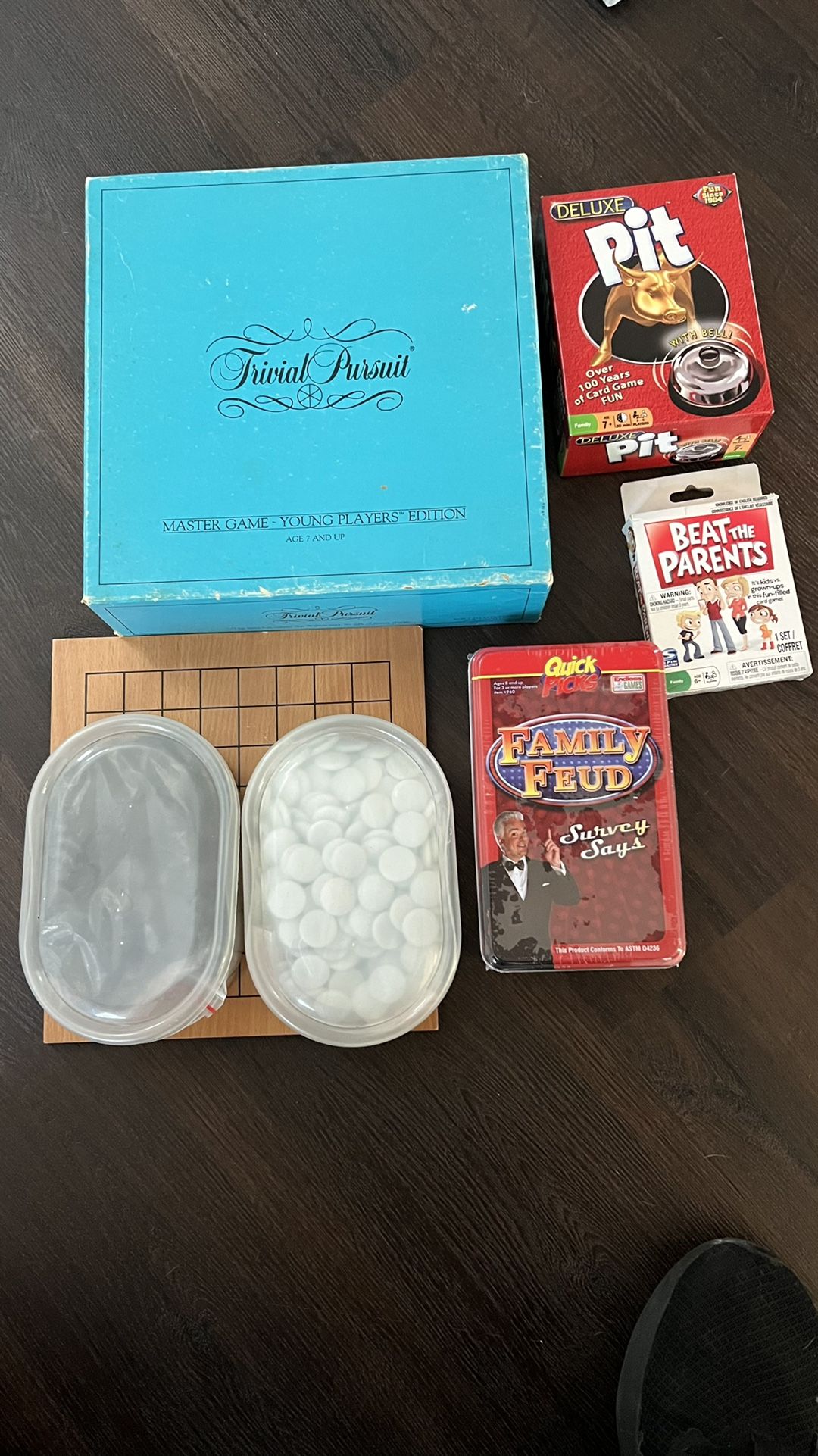 Selling as a lot, $40 and comes with: $40 GO set - new Older edition Trivial Pursuit Pit - new Beat the Parents Family Feud - new Thanks!