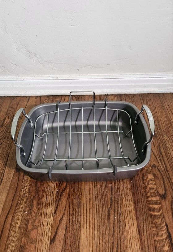 (New) Circulon Nonstick Roasting Pan / Roaster with Rack - 17 Inch x 13 Inch, Gray