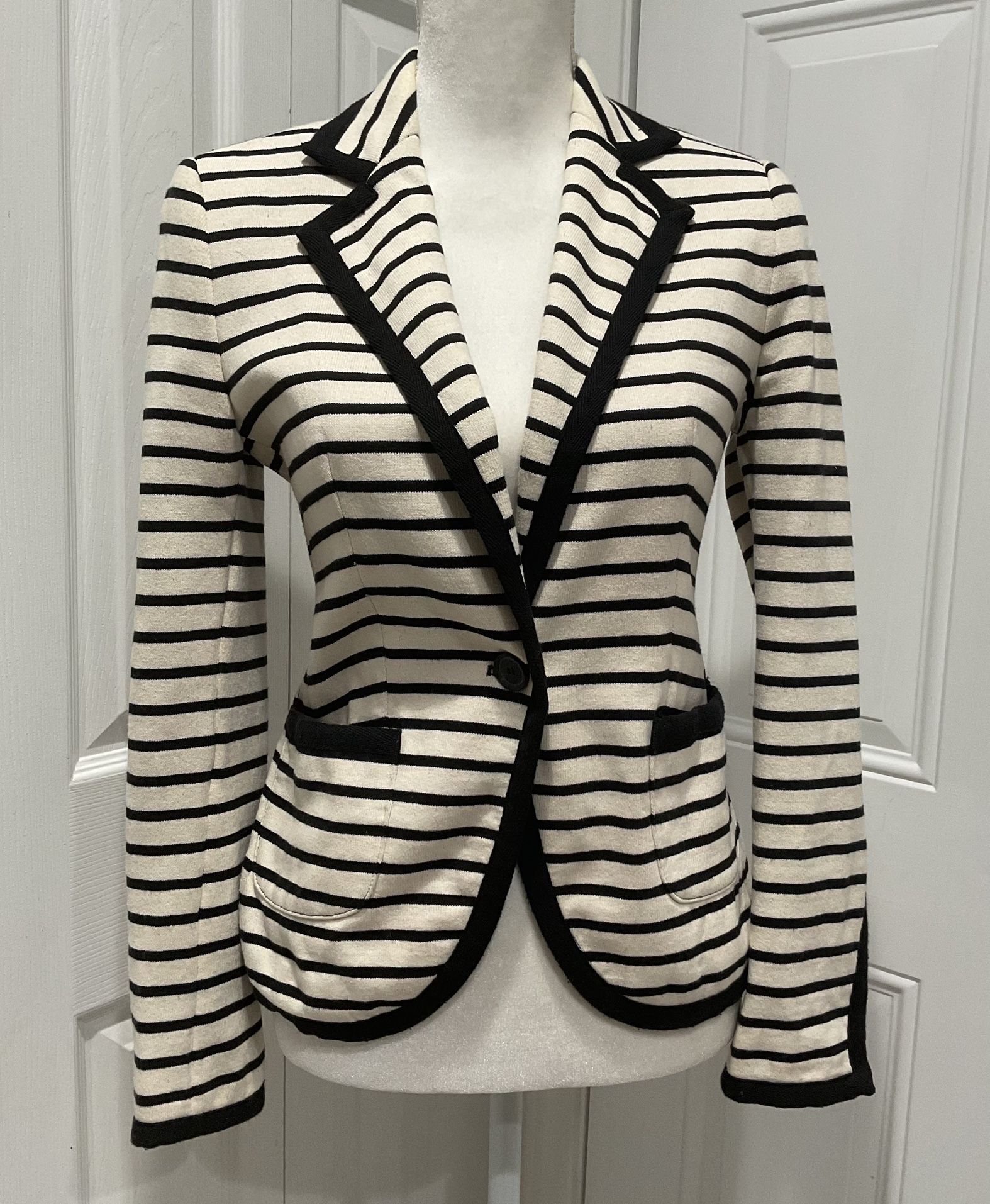 ZARA Women’s Off White/ Black Cotton Fitted Pockets Lined Jacket, Size M