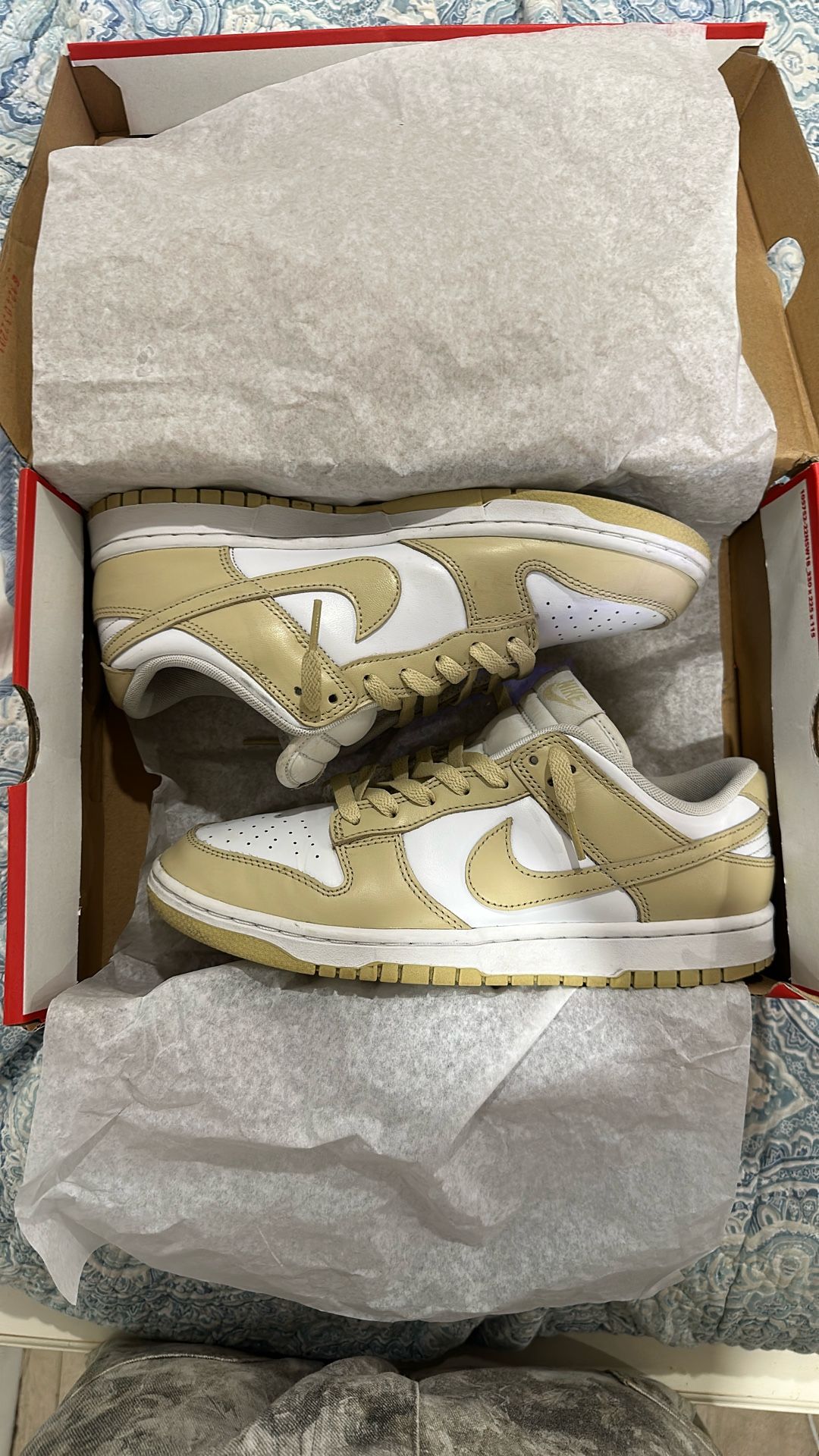 (Used) size 9 M OG Box The Nike Dunk Low Team Gold arrives in a white, team gold-wolf grey-white color palette.
