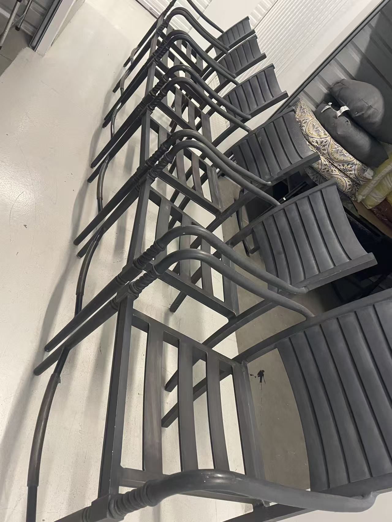 Outdoor Set of 6 Hampton Bay Bar Metal Chairs(Free Delivery) Price for set all. Good Condition Overall Nothing wrong Dimensions 22”W 20”D. 23”Seat Height 39”Back Height Do Free Delivery up to a 15 mins radius - or extra for farther (pick up OBO) Zelle or Cashapp Venmo