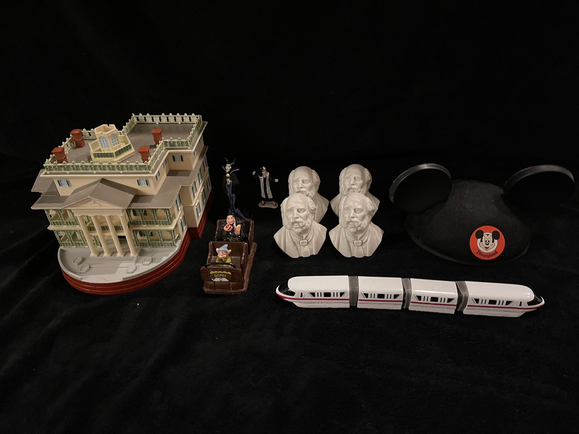 Disney Haunted Mansion Monorail Playset Disneyland, Snow White Die Cast Vehicle, Maleficent, Cruella, Mickey Mouse ears hat - Rare Lot All 20+ years old! Been in storage. Any questions, feel free to ask!