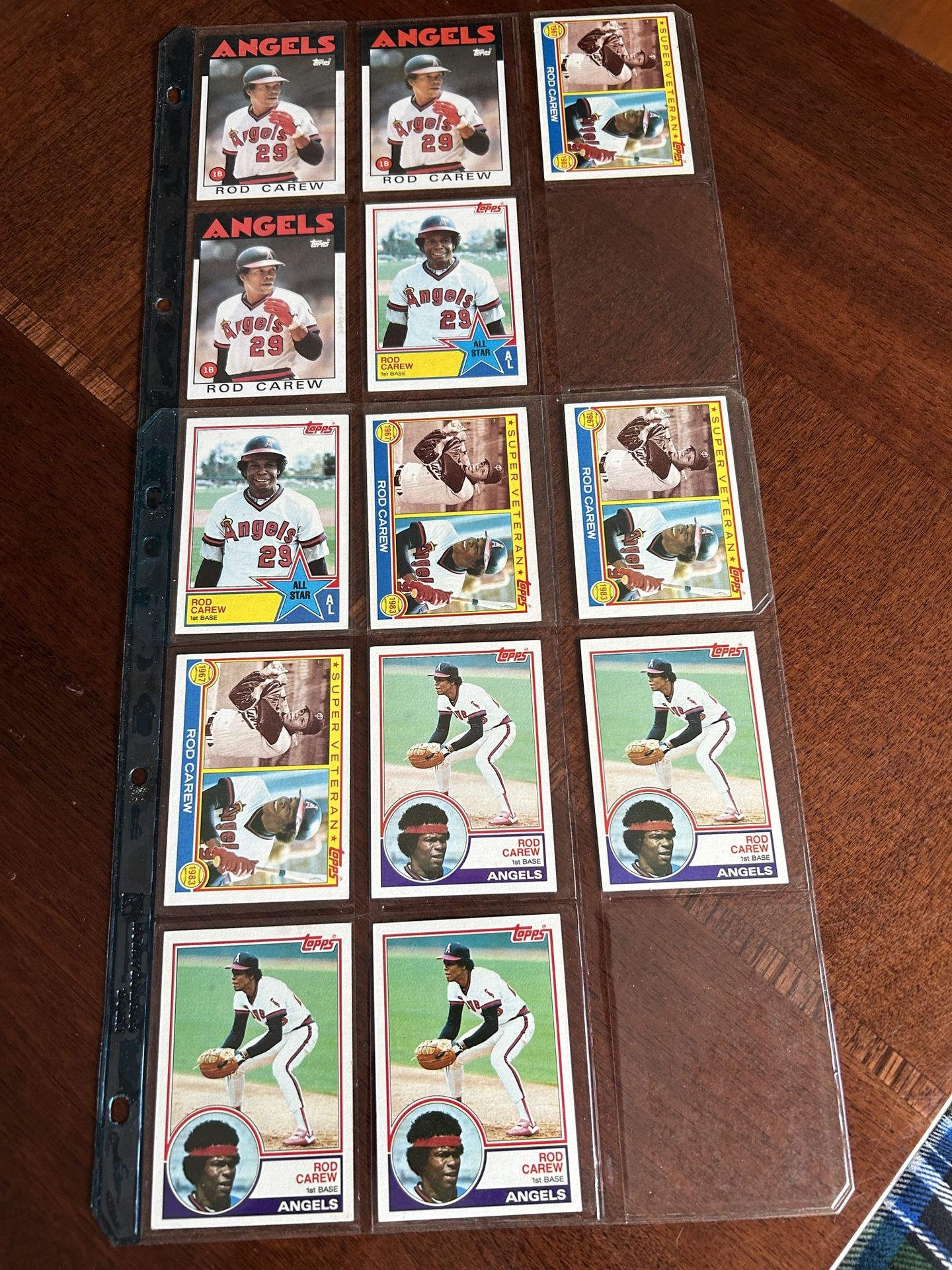 Top baseball card collection lot of 13 mint condition cards of Rod Carew Los Angeles, Angels first base All-Star. All 13 cards for one price. All cards in mint condition. Dated 1983 to 1987. As pictured.