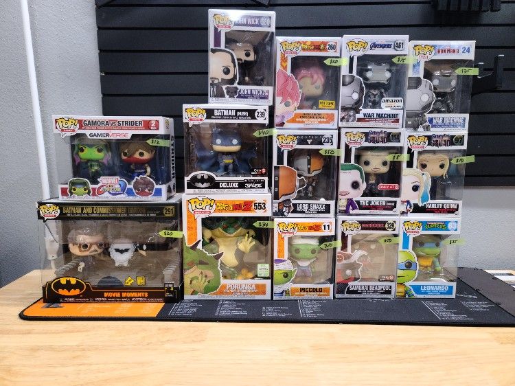 Samurai Deadpool 329 $50 Lord Shaxx 235 $50 Leonardo 63 $25 War Machine 461 $15 War Machine 24 SOLD Harley Quinn 97 SOLD The Joker 104 SOLD SS Rose Goku Black 260 SOLD Gamora vs Stider $12 Piccolo 11 $10 Batman Hush 239 $40 Batman and Commissioner $20 slight box damage Porunga 553 $30 John Wick $10