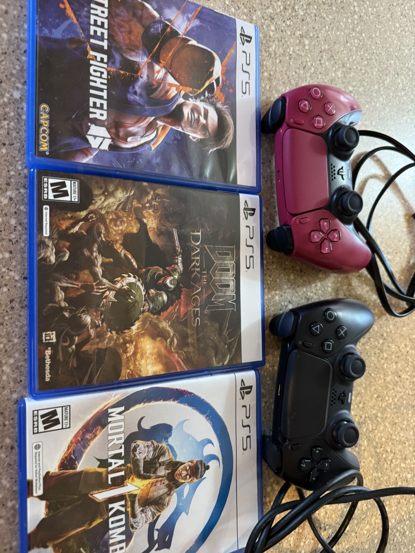 PlayStation five disc and digital console, games included. Also digital games downloaded already Black myth Wolf Kong in Indiana Jones Spider-Man other games that put on there. Limited edition, Spider-Man video game consoles