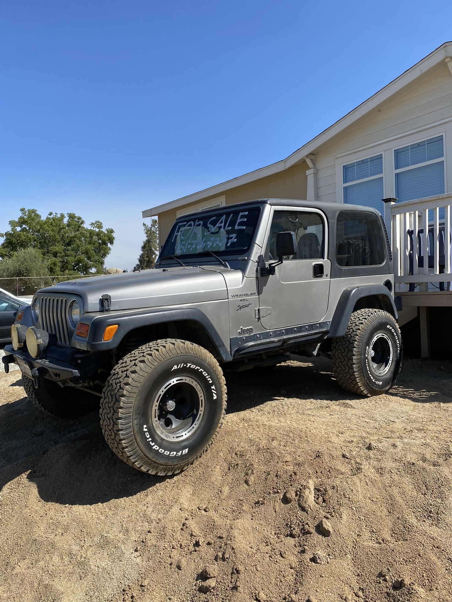 Jeep Wrangler sport , 6 cylinders 4x4 , standard transmission, pro comp suspension is salvaged title . Hardtop . Asking 8000 obo