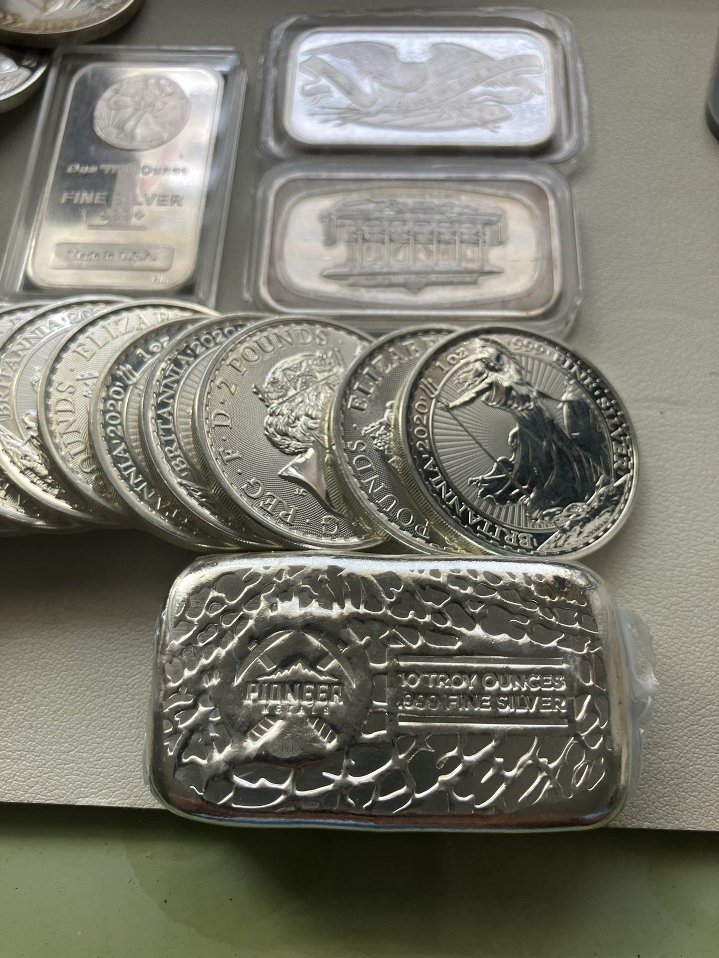 I have several Silver Bars Coins .999 Silver 1 Oz And More Buffalos , Britannias , vintage bars ! 84 per Oz ! It’s a minimum of 10 oz purchase 🙏