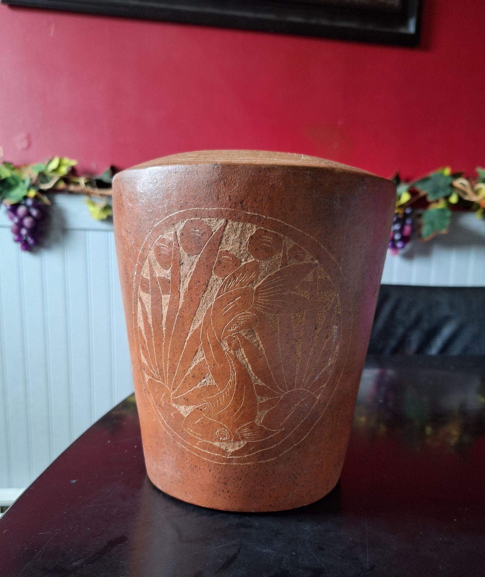 Cool looking etched koi fish vase. About 9" tall. Made in Indonesia. Asking $15 obo