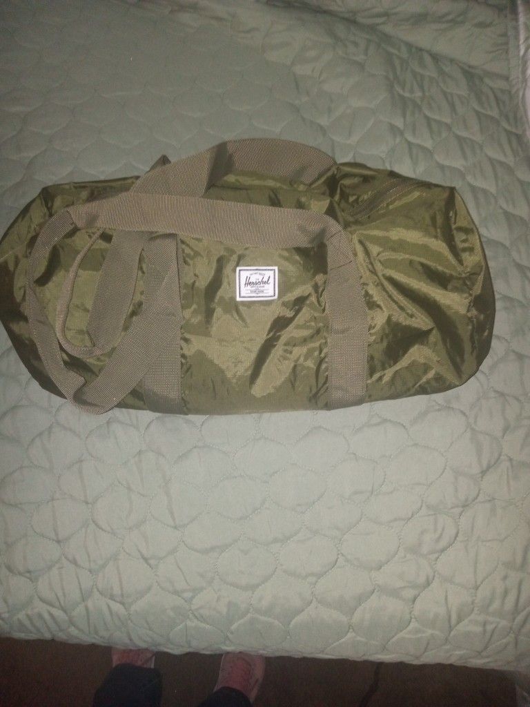 Brand new Herschel army green duffel bag great for carry on bag gym bag or everyday use.