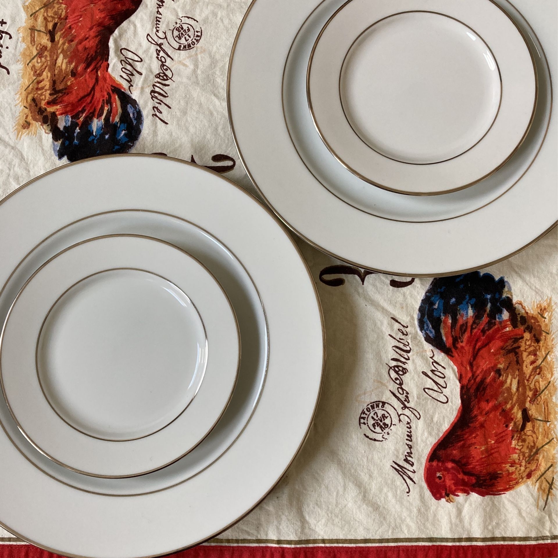Pre-owned dinner plate white china double gold rings ( not a complete set) 7 dinner plates 5 salad plates 4 dessert plates Available for pick up