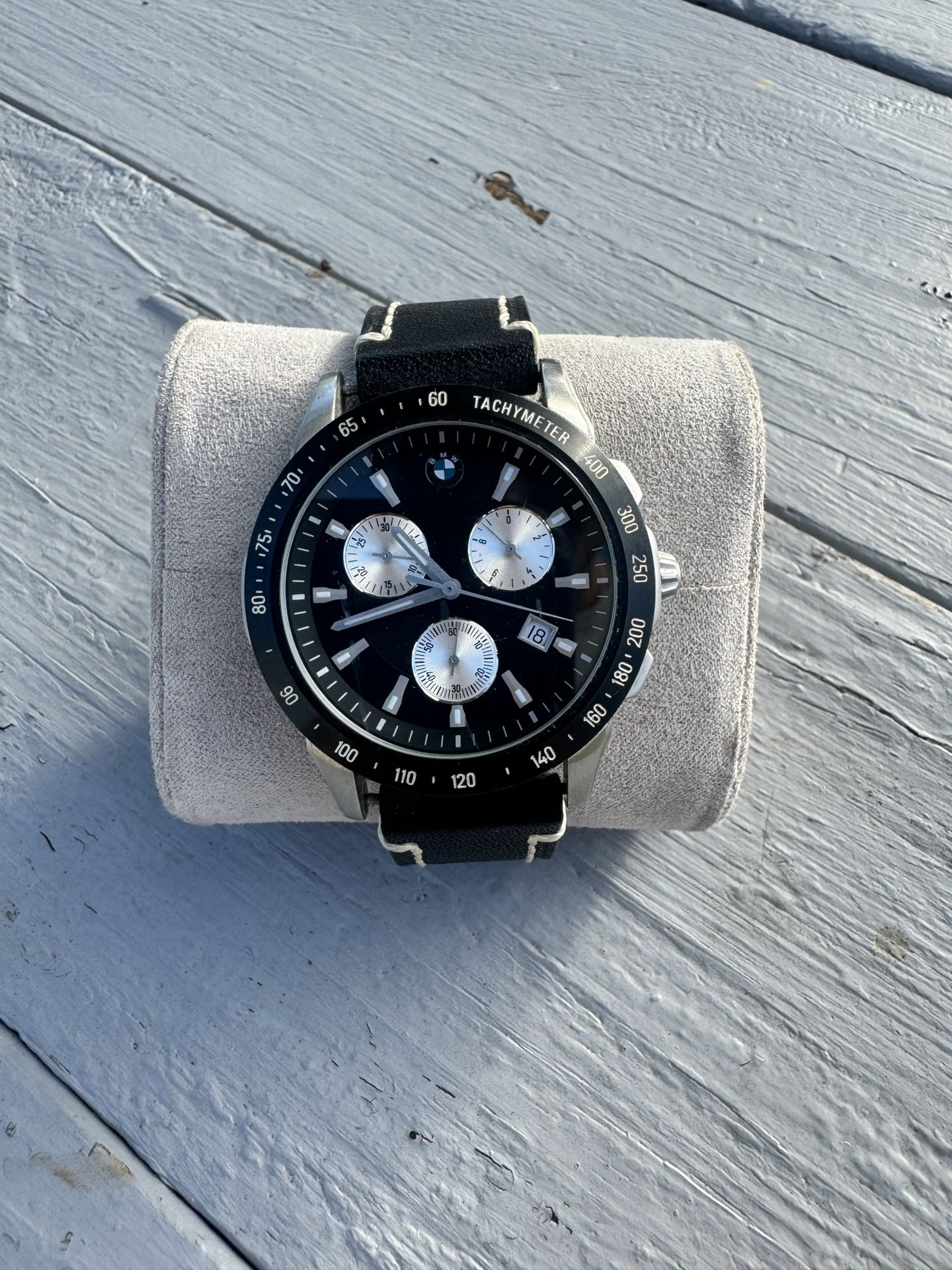 Mens BMW watch with leather strap No box Works good, just need to adjust the date & time. 45 obo