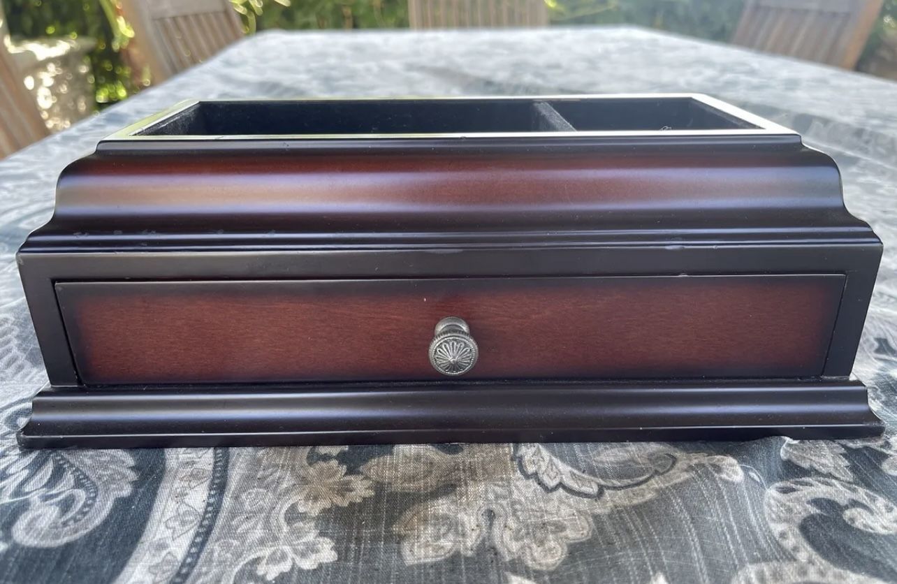 Vintage Bombay Co. Wood Valet Box Desk Organizer W/Drawer
