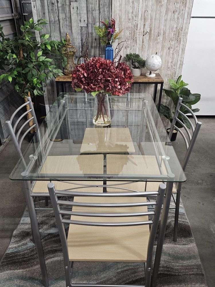 Kitchen Dining Room Table and Chairs 4, 5-Piece Dinette Sets, Space Saving (Silver with glass top) The table is 30"H x 27.5"W x 43.3"L