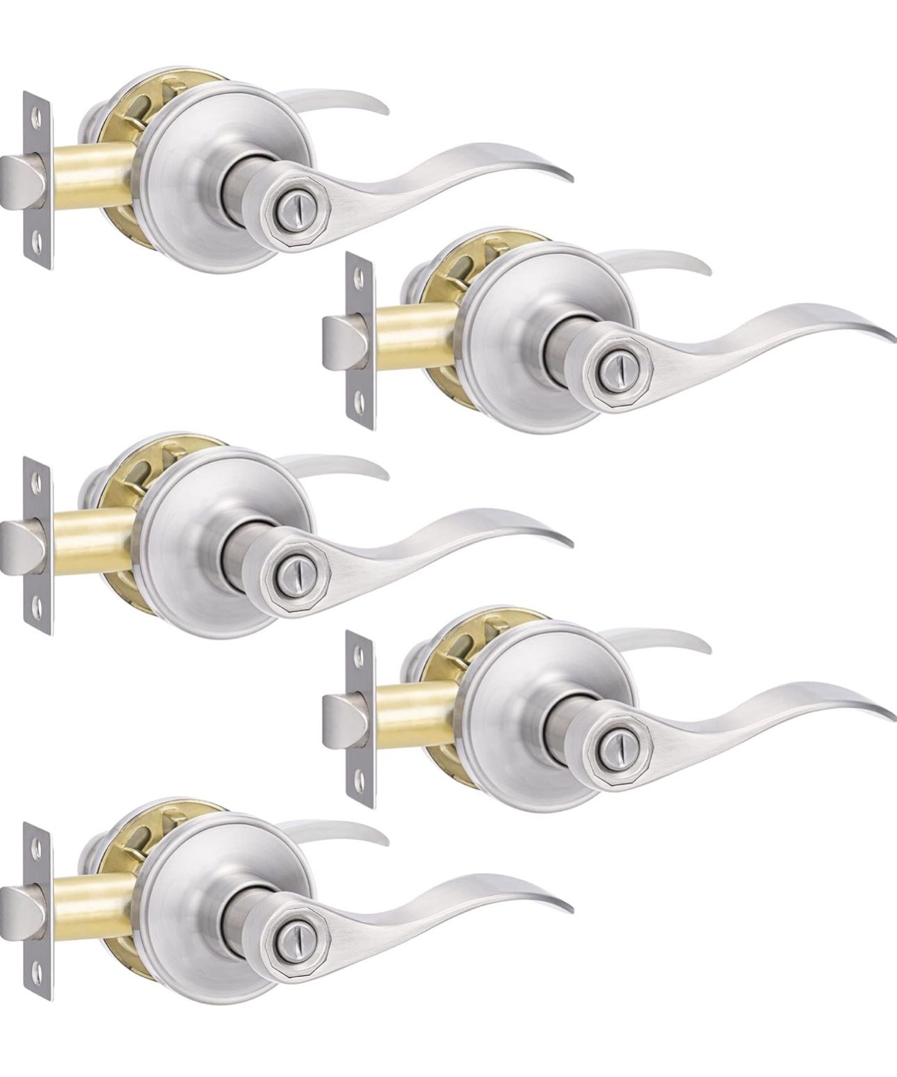 5 Pack Privacy Door Handle, Brushed Nickel Keyless Lever With Lock for Interior Door, Closet, Bathroom, Bedroom, Wave Style, Satin Nickel Pick up in perris