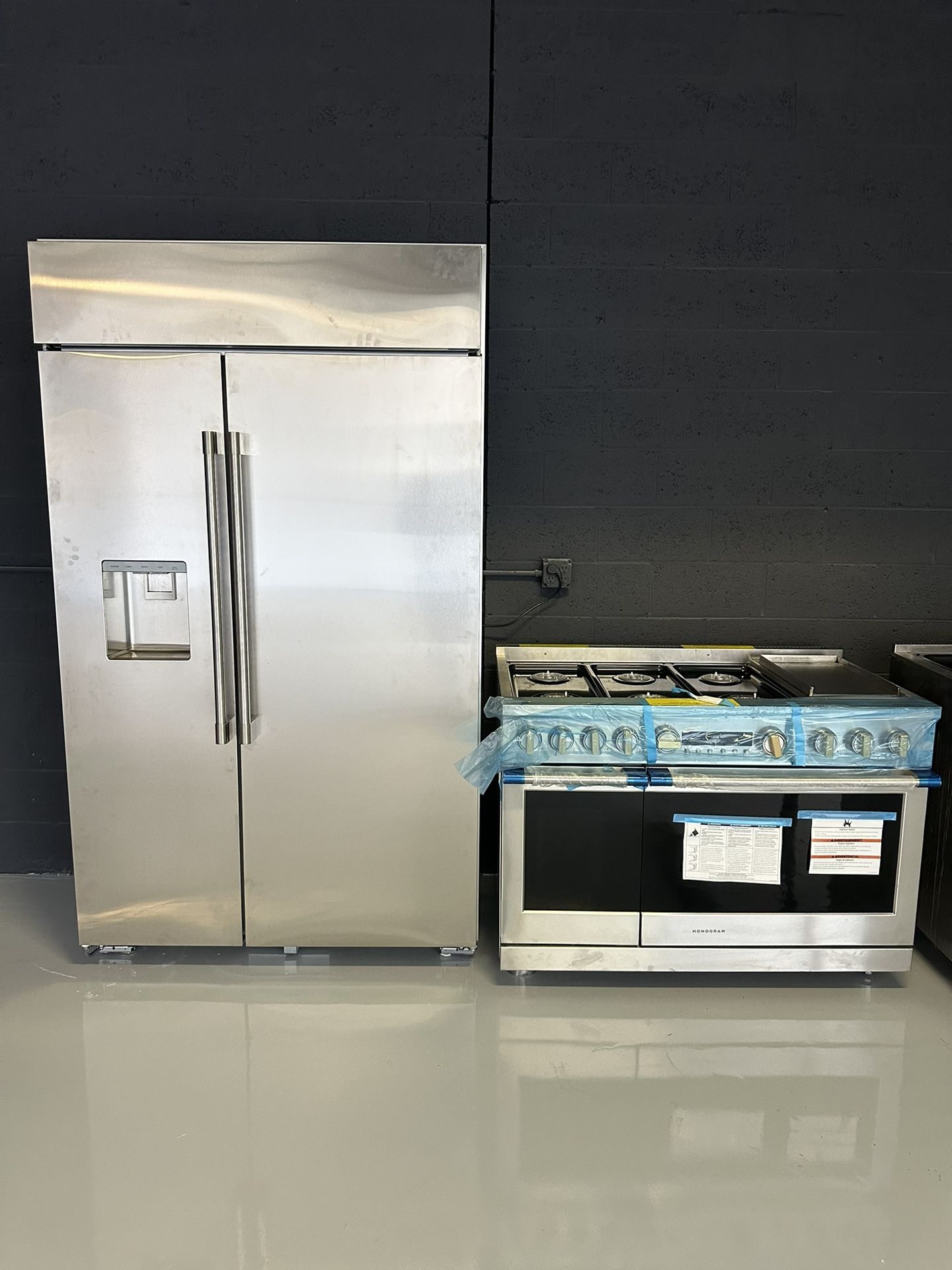 Brand new units still in box Dual fuel range Under factory warranty Model number - ZDP486NDTSS Brand new matching hood Model number - ZVW1480SPSS Located off the i17 and bell rd Thank you Wolf sub zero stove range oven kitchenaid stainless thermador ge monogram Samsung Maytag new used east west south north Scottsdale Phoenix Arcadia Goodyear Mesa chandler peoria fancy huge large new nice wine appliance package steel dual fuel electric gas Viking sub-zero fridge refrigerator warming drawer subzero Dacor vent draft hood fan miele bosch sub-zero subzero built in general electric whirlpool frigidaire wall oven double wall Viking sub-zero fridge refrigerator warming drawer subzero Dacor vent draft hood fan miele bosch sub-zero Viking, Wolf, Thermador, Subzero, Sub-Zero Dacor, Kitchenaid, Kitchen Aid, GE Monogram Asko Cove Jenn Air Jennair Benchmark Miele Electrolux Gaggenau La Cornue Sharp Fulgor Milano Whirlpool Samsung LG, Kenmore, Amana DCS Frigidaire, Kenmore Maytag Thor Blue Star Fisher Paykel, Scotsman Smeg U-Line, Lynx Best Ventahood Dawai Haier Zephyr Broan General Electric, Panasonic, American range, NXR, Forno, Avalon, Edgestar GE-Café series, Koldfront, Franke Landmark, Marvel, True, Speed Queen, Blomberg, Noir, Rise, Creations, Aquabrass, Bluestar, Bainultra, Barclay, California faucets, Coyote outdoor exhaust, dishwasher, drawer dishwasher refrigerator, cooktop, range top, rangetop, microwave, French door, oven, wine, wine cooler cellar built-in stove top, Stove, range, gas, range top, electric range, decor, counter kitchen remodel, wall oven, BBQ, AC, electric cooktop, double oven, stainless steel, 36 inches, otr, steam oven over the range microwave, washer dryer, electric dryer laundry, wine cooler, beverage center, induction, downdraft, island hood, wall hood, chimney hood, vent insert hood, liner hood, ceiling hood, coffee maker, trash compactor, ice maker, combo oven, gas oven, standard fridge, patio, kitchen, remodel, stove, single wall oven professional range, gas range, combo built-in, exhaust, warming drawer washer dryer refrigerator, cooktop, range top, rangetop, microwave, laundry tv ac a/c french door