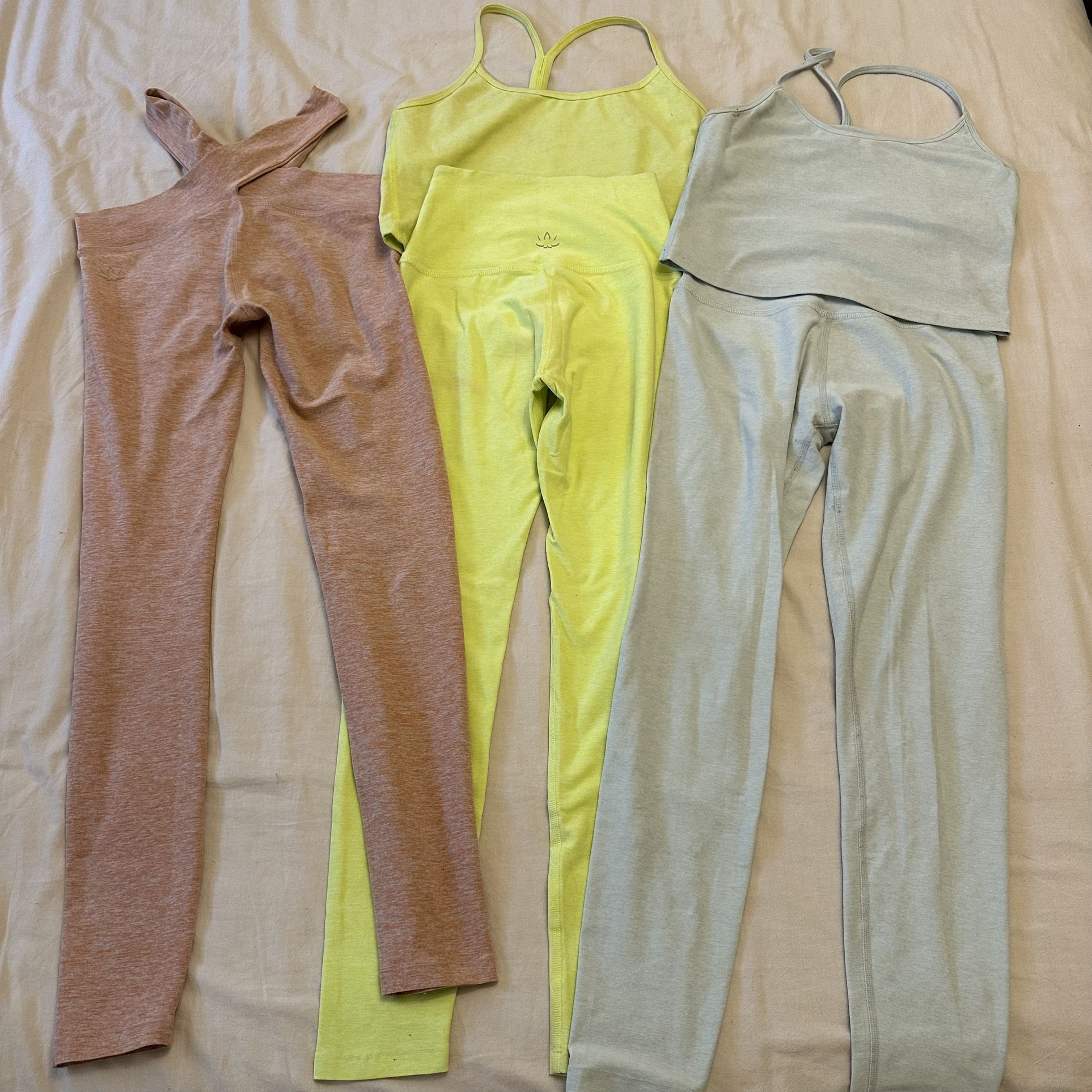 Selling my Beyond Yoga Collection. Leggings are all size small and the two tanks are size Large, but run small. Excellent preowned condition. The Pink leggings are in new condition and I’m selling for $60. The two tanks are $20 each and the other two leggings are $40 each. Happy to bundle and save. Note** Only Pink leggings are still available— the blue and yellow sets have both SOLD!! Check out my other listings as I’ve posted 85+ lululemon items (all in pristine condition and most unworn). Cash only (no cash apps). Feel free to reach out with any questions.