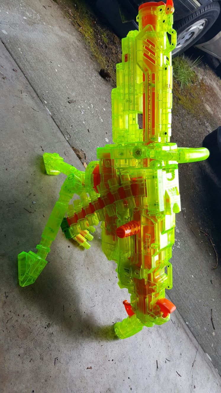 sonic series nerf vulcan, missing ammo box. comes with gun, stand, and ammo chain