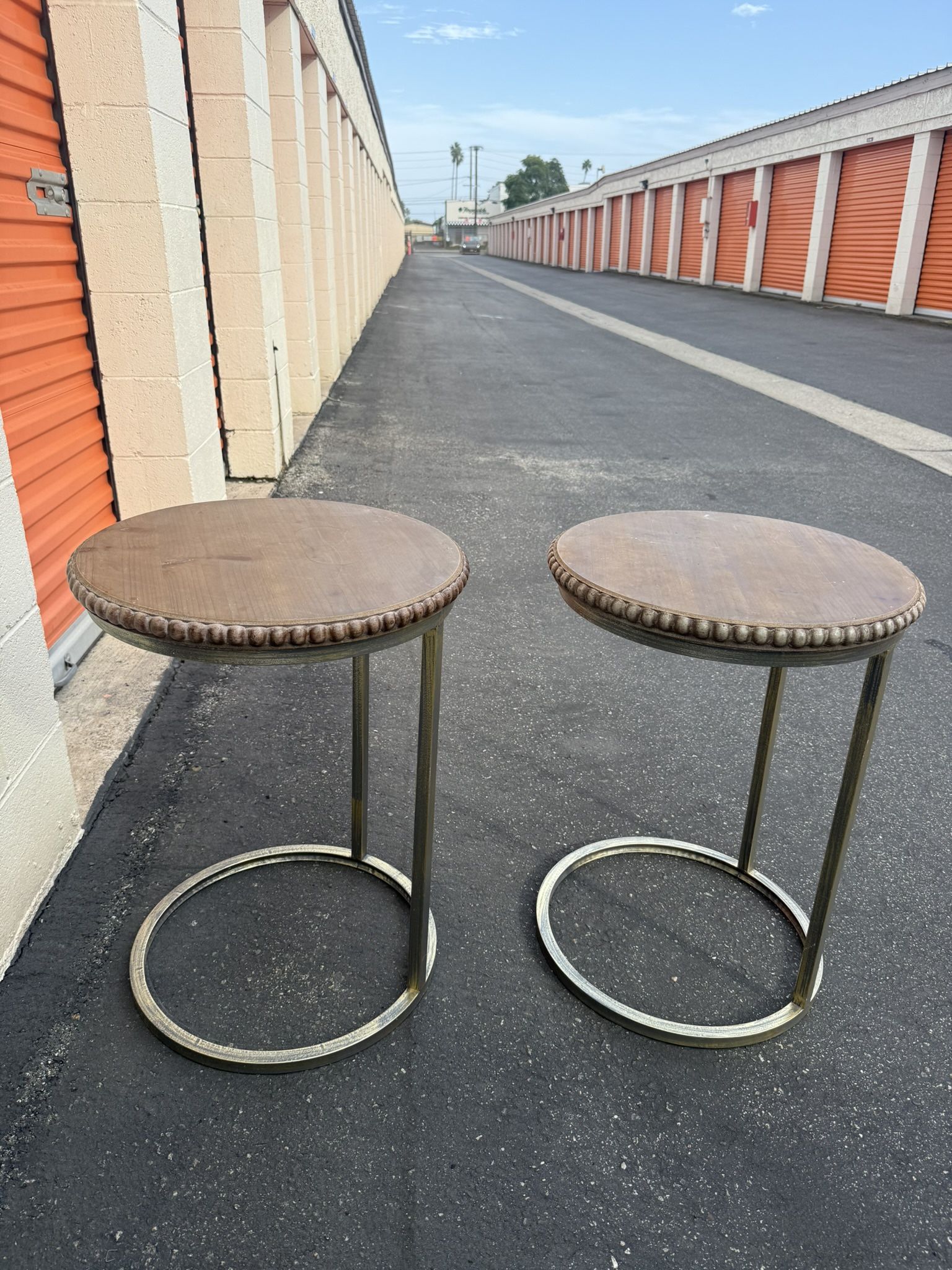 End tables 40$ for both. Originally bought for $100 each. Not taking less. 18.5 inches in diameter. Coffee table $50. In excellent condition. Originally $100. Approx. 2-2.5 feet diameter