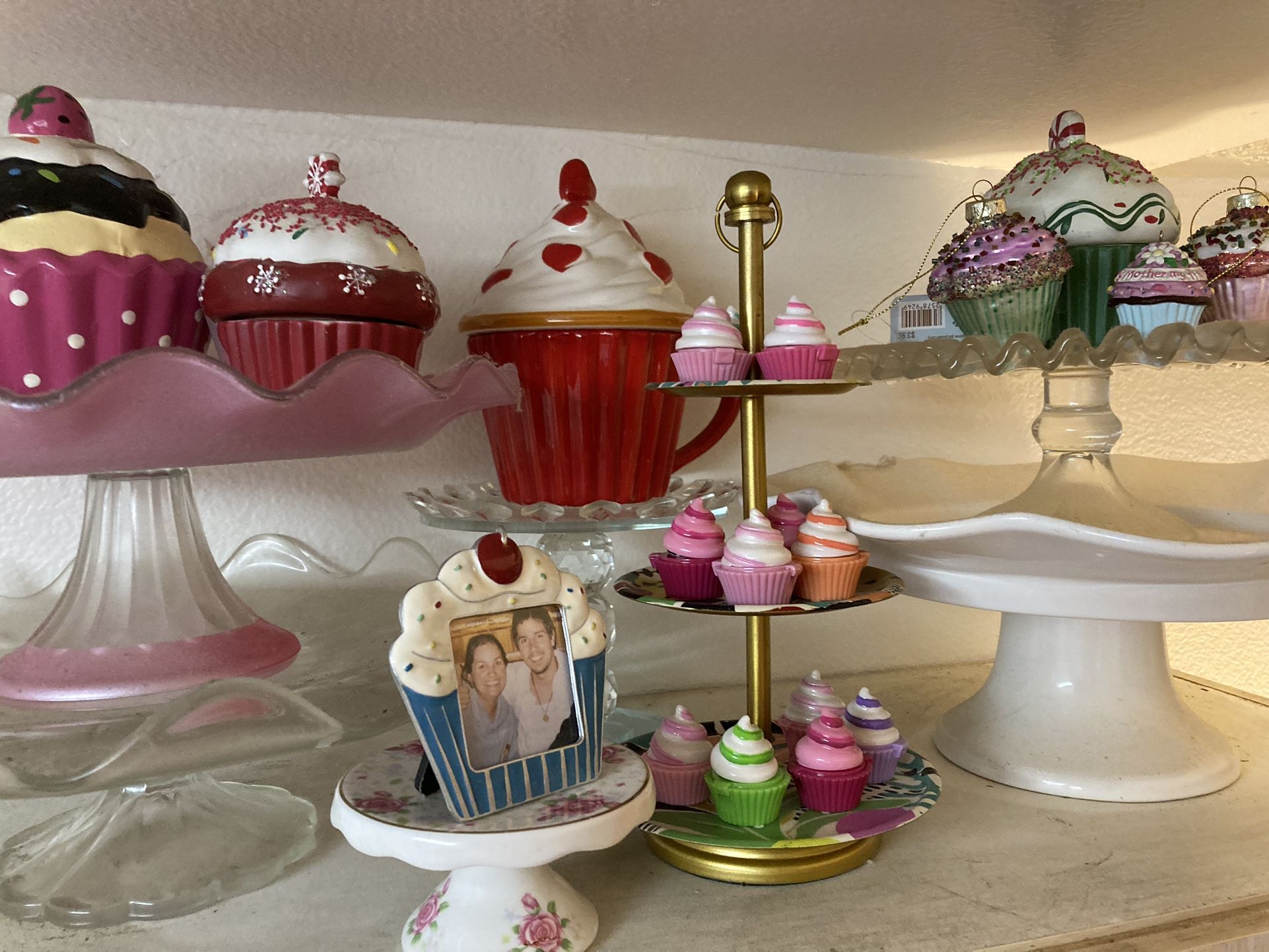 OVER 120 PIECES from GEMS CUPCAKE CO. HUGE COOKIE JARS to tiny Z Folio handmade pieces (originally $50 each), LIP GLOSSES w/ Stands, trays, ornaments, Salt n Pepper shakers, SPODE, CANDLES, Place Holders, CUT CRYSTAL, Paintings, Cards, Games, Platters, SIGNS, Plates, & MORE! THE ULTIMATE CUPCAKE COLLECTION!!!