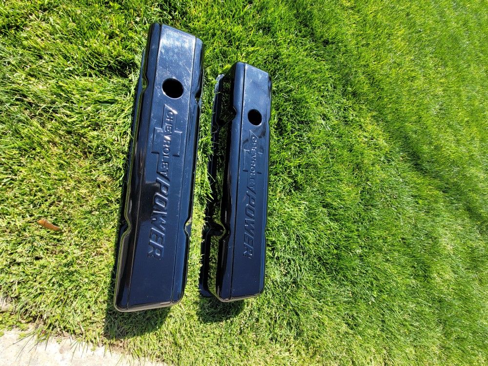 NOS Vintage CHEVROLET POWER BOWTIE Small Block Chevy Valve Covers Powedercoated Black