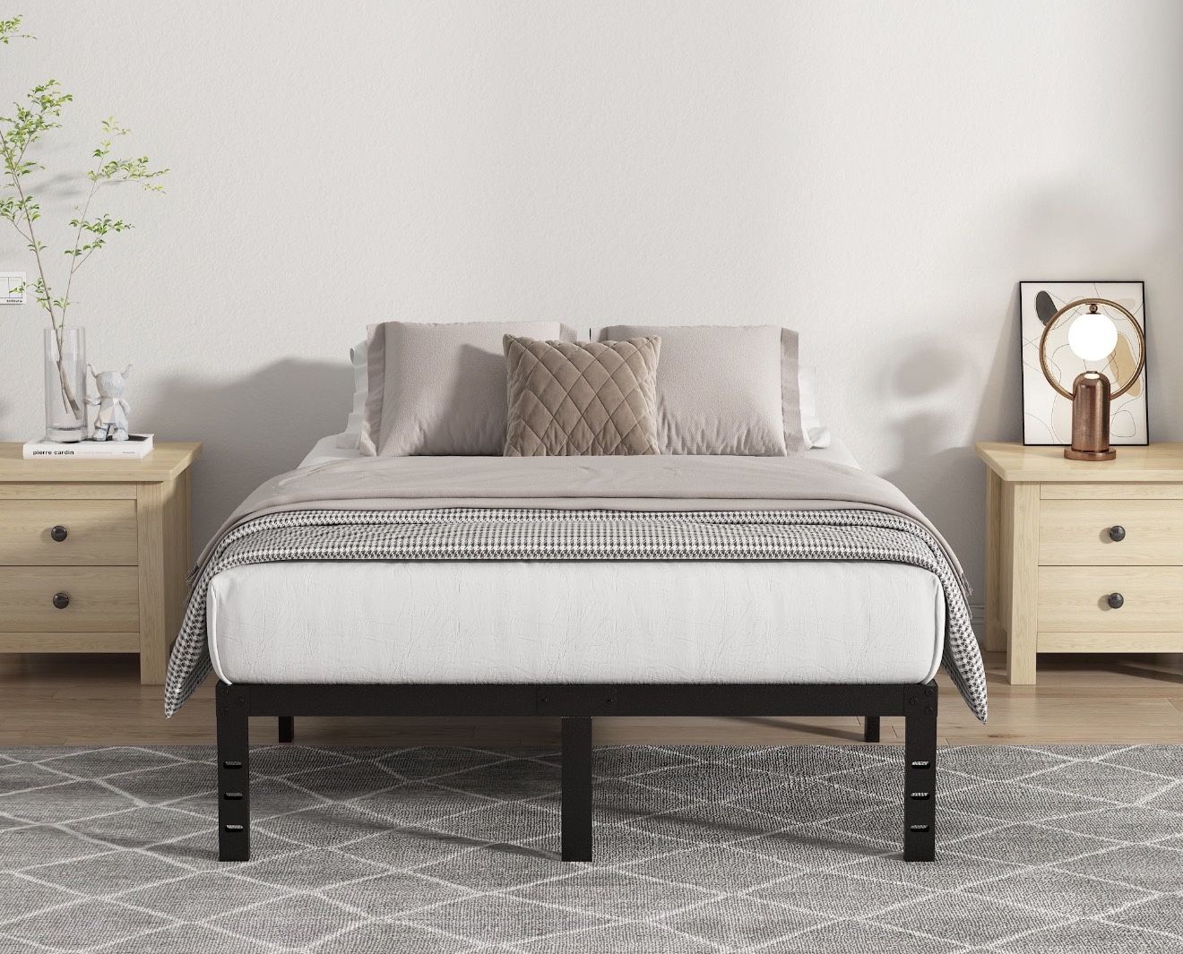 Delivery in 2-5 days • FASHIONABLE AND BEAUTIFUL:This bed frame adopts wrought iron frame, featuring a sleek and minimalistic design. The edges and corners of the bed frame have been carefully polished, making it easy to clean with a damp cloth. The bed frame's contemporary style will complement all your home decor, adding a touch of elegance and sophistication to your bedroom. • STRONG STABILITY: This metal bed frame is supported by upgraded metal rods and metal legs, which stand the test of time. Our bed frames are made of heavy duty reinforced metal rods, reinforced with thicker material to make them more stable and load bearing. You can rest assured to spend every night! • STURDY TUBE: The sturdy steel slat support with center support legs makes the metal bed more stable without any annoying sliding or creaking. • SPACE SAVING: This bed frame has a large storage space under the bed, which brings you ample storage space and easy cleaning. Can be arranged according to your needs for storing extra odds and ends. Raised bed frames allow you to enjoy more storage space for bedroom items and help reduce clutter in the room. • WIDELY APPLICABLE: The platform bed frame can be used in bedrooms, guest rooms, dormitories, hotels, etc.