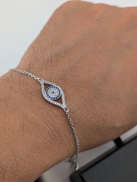 ONLY ONE AVAILABLE Adjustable 6" - 7" 925 Silver PROTECTION CHARM Evil Eye Bracelet Melee Diamonds Sapphires(18)and CZ Gifts for Her. FAST SHIPPING THANK YOU! π Follow my OfferUp store for more offers Have a blessed day.