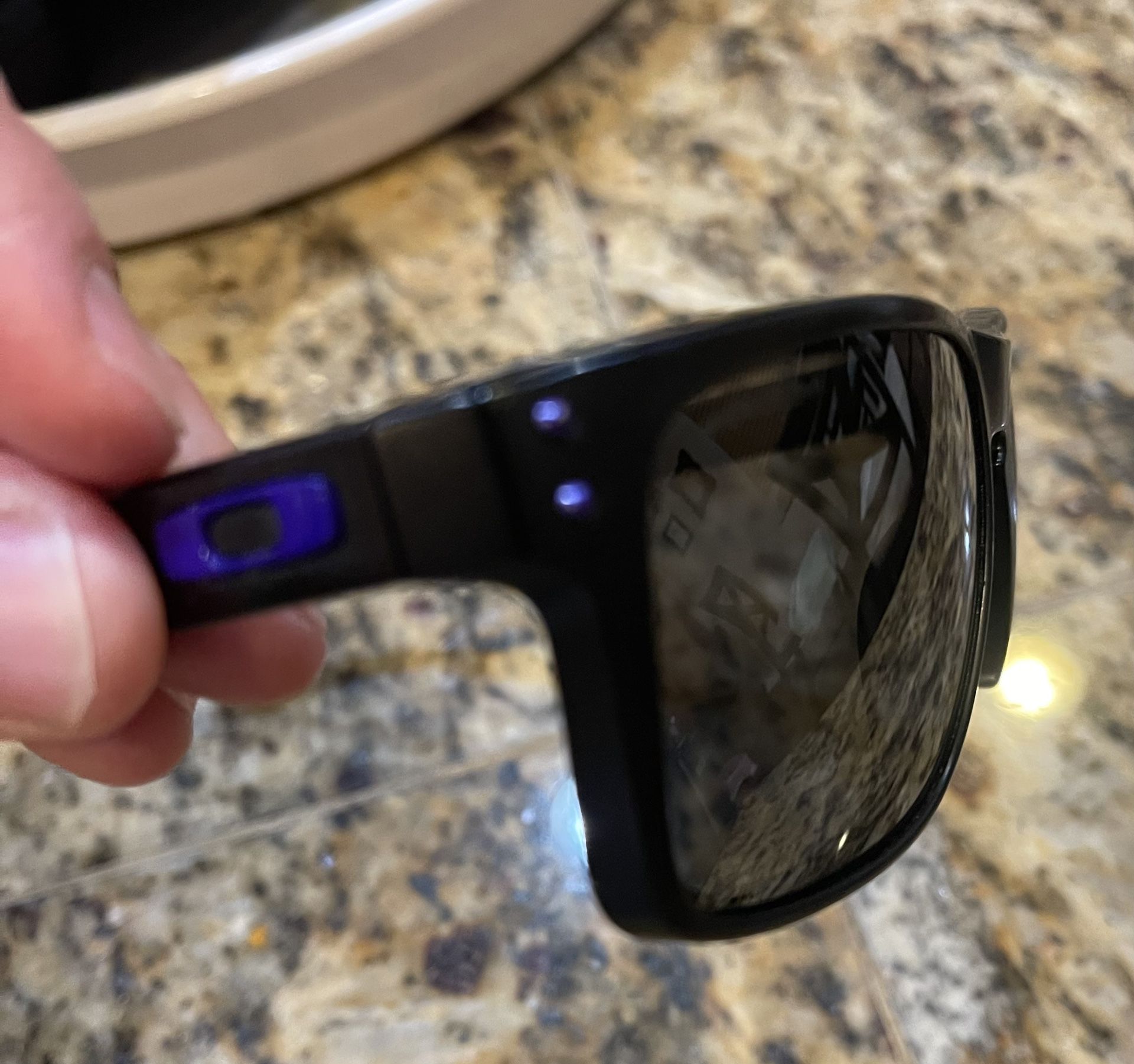 Used purple Oakley Holbrook sunglasses. Good condition, one minor ding in the left lens but not noticeable unless you are looking for it. I would continue to wear them, but I have to wear glasses full time now. $50 obo, bought for $120 at the Oakley outlet.